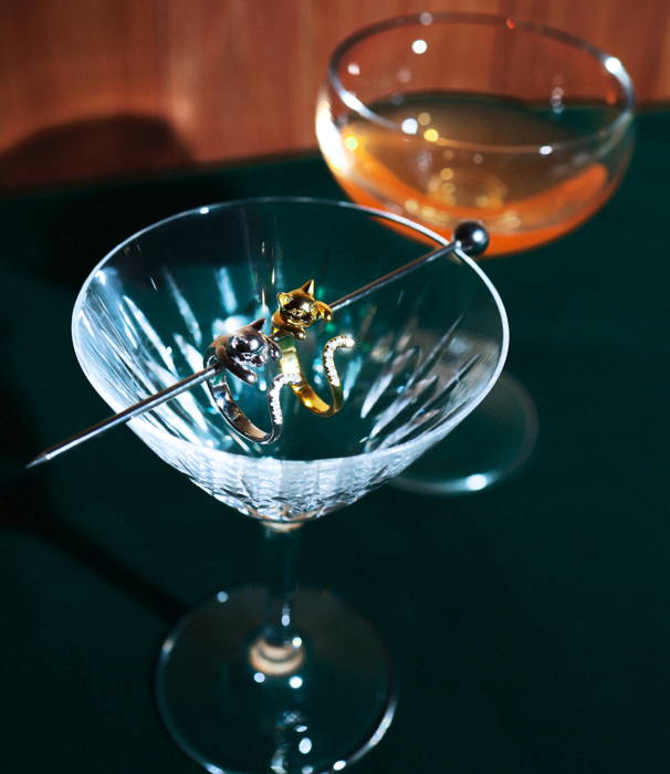 Infaction’s history. This eye-catching brooch, with its pearls and dangling chain, can be attached to a jacket, scarf, hat, bag, and more. ■Price: 14,300 yen (tax included) New Debut | “Cat “Cat Line” Ever since Itsuki Fujiwara began collaborating with Infaction, he had always wanted to create cat-themed items. To commemorate the third year of their collaboration, a new line, “Cat Line,” was born. Cat Ring ・Color: Gold/Silver ・Type: Silver925/Casual (brass) ・Ring Size: XS Size (size 6 *Limited size for advance period), S Size (size 9), M Size (size 12), L Size (size 15)