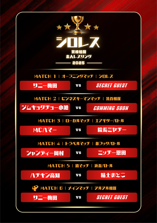https://prcdn.freetls.fastly.net/release_image/150057/7/150057-7-196e8a4362e4190265076bb8fd095ee8-890×500.png 1. Opening Match: Whiteless The legendary champion, Sunny Umeda, appears right from the start. Sunny is a great admirer of professional wrestler Shinya Hashimoto, known for his motto, “There is no creation without destruction.” Will the destruction begin right at the start of the year-end party?