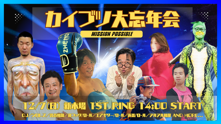 12/7 (Sun) @ Tokyo, Kaibutsu Year-End Party (Pro Wrestling Venue Rental) / Free Invitation for the First 100 Guests