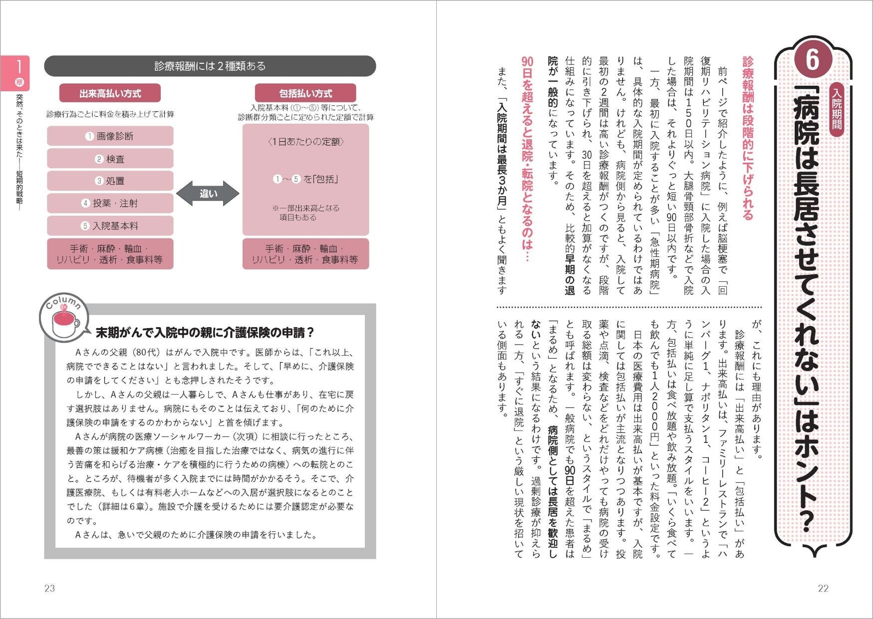 https://www.shoeisha.co.jp/book/detail/9784798191638 Available at bookstores nationwide, online bookstores, etc. ・Shoeisha’s online store SEshop: https://www.seshop.com/product/detail/27164 ・Amazon: https://www.amazon.co.jp/dp/4798191639 ■Table of Contents Chapter 1: Suddenly, the moment came! -Short-term strategy- 1: “I got a call saying my parent collapsed and was hospitalized!” 2: Do I need a “guarantor” or “deposit” for hospitalization? 3: I want to know the “schedule” during my hospitalization. 4: Is a “consent form” required for surgery, tests, or treatment? 5: What happens after admission, transfer, and what happens after? 6: Is it true that “hospitals won’t let you stay long”? 7: Who should I talk to about my concerns during hospitalization? 8: How much will my parent’s “hospitalization expenses” cost? 9: Will I need to pay an additional bed charge even if the shared rooms are fully booked? 10: What if my parents have private medical insurance? 11: What about having someone to accompany me or do my laundry while I’m hospitalized? 12: What kind of hospital should I stay in if I need to stay in the hospital for a longer period of time? 13: Can I apply for nursing care insurance even while I’m