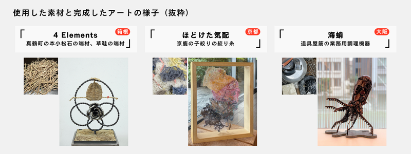 https://prcdn.freetls.fastly.net/release_image/154394/8/154394-8-7f77381381386b98832024c140e7a571-800×300.png Materials used and finished artwork (excerpt) What we aim to achieve through this project Until now, “sustainability” and “SDGs” have often been discussed as something that “must be done.” This time, through collaboration with ORIX Hotel Management, which provides experiences to many tourists, we are proposing a “fun and tangible cultural experience” that connects people to the environment and local resources. Behind the scenes of local industries and crafts that usually go unnoticed, a variety of materials are born every day and then quietly forgotten. ACTA picks up materials that would otherwise be discarded in the area and transforms them into new forms of expression through the hands of artists. Through the artworks, visitors can unravel the backstories of local industries and crafts and discover new appeal. We hope that spending time exploring such art will leave you with deeper, richer memories of your trip. Comments about the initiative