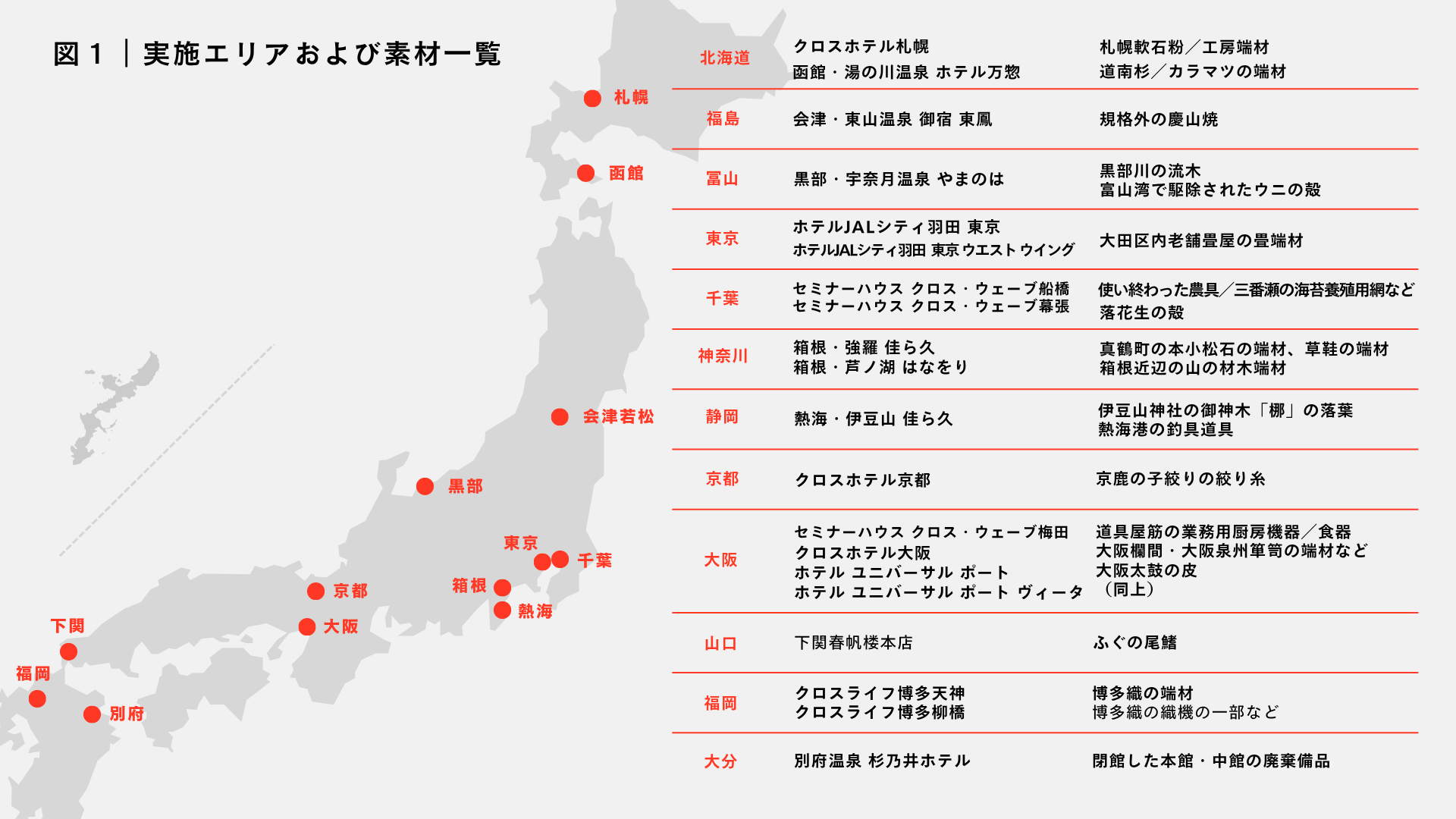 simultaneously launch an art exhibition using materials that would otherwise be discarded, generated by local industries, at 20 directly managed inns, hotels, and training facilities across the country, starting November 1, 2025. *Includes business support facilities