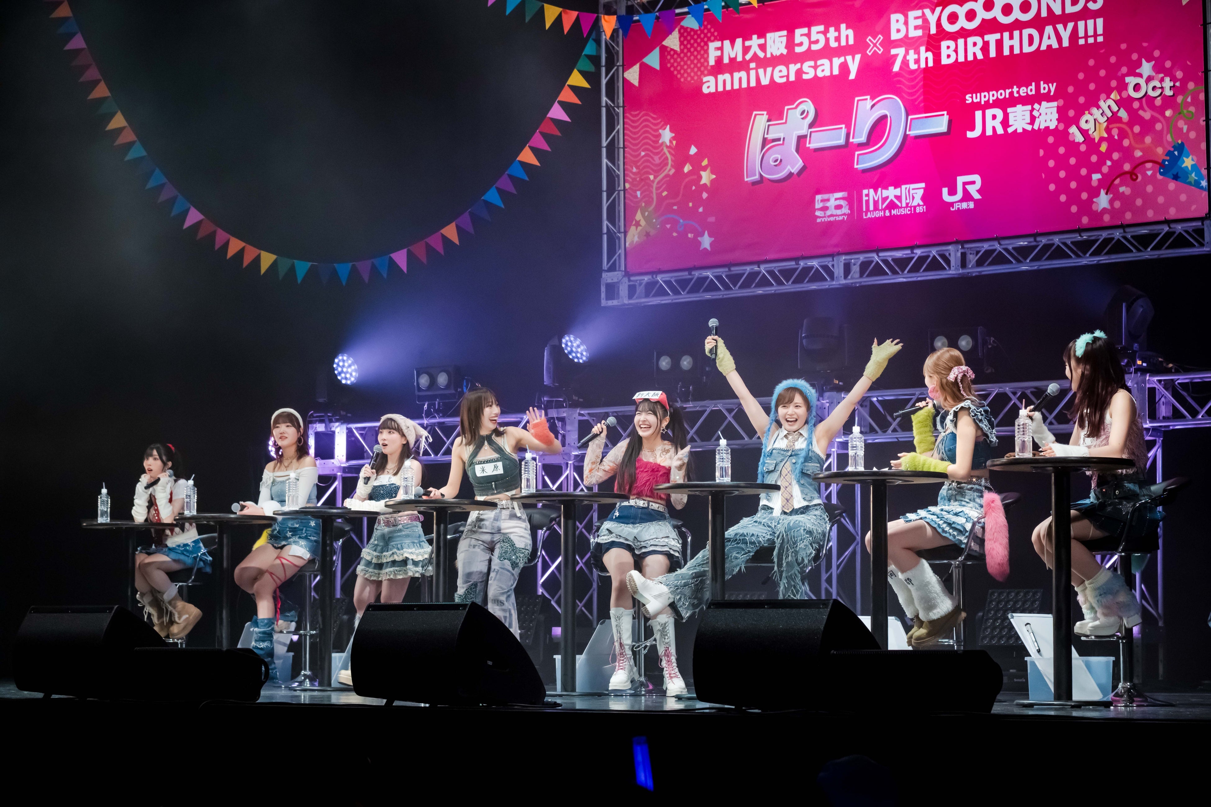 【FM Osaka】【Live Report】『FM Osaka 55th Anniversary × BEYOOOOONDS 7th BIRTHDAY!!!』 Parry supported by JR Tokai” FM Osaka Co., Ltd. Press Release: October 20, 2025 [Live Report] “FM Osaka 55th Anniversary × BEYOOOOONDS 7th BIRTHDAY!!!” Party supported by JR Central” We held a public recording event to celebrate the 7th anniversary of the formation of “BEYOOOOONDS,” an idol group made up of talented members from Hello! Project who are unstoppable no matter what they do! Public Recording Event “FM Osaka 55th Anniversary × BEYOOOOONDS 7th BIRTHDAY!!!” “BEYOOOOONDS PARTY supported by JR Central” was held at Zepp Namba (OSAKA) on Sunday, October 19th to commemorate the 7th anniversary of the formation of BEYOOOOONDS and the 55th anniversary of the launch of FM Osaka.