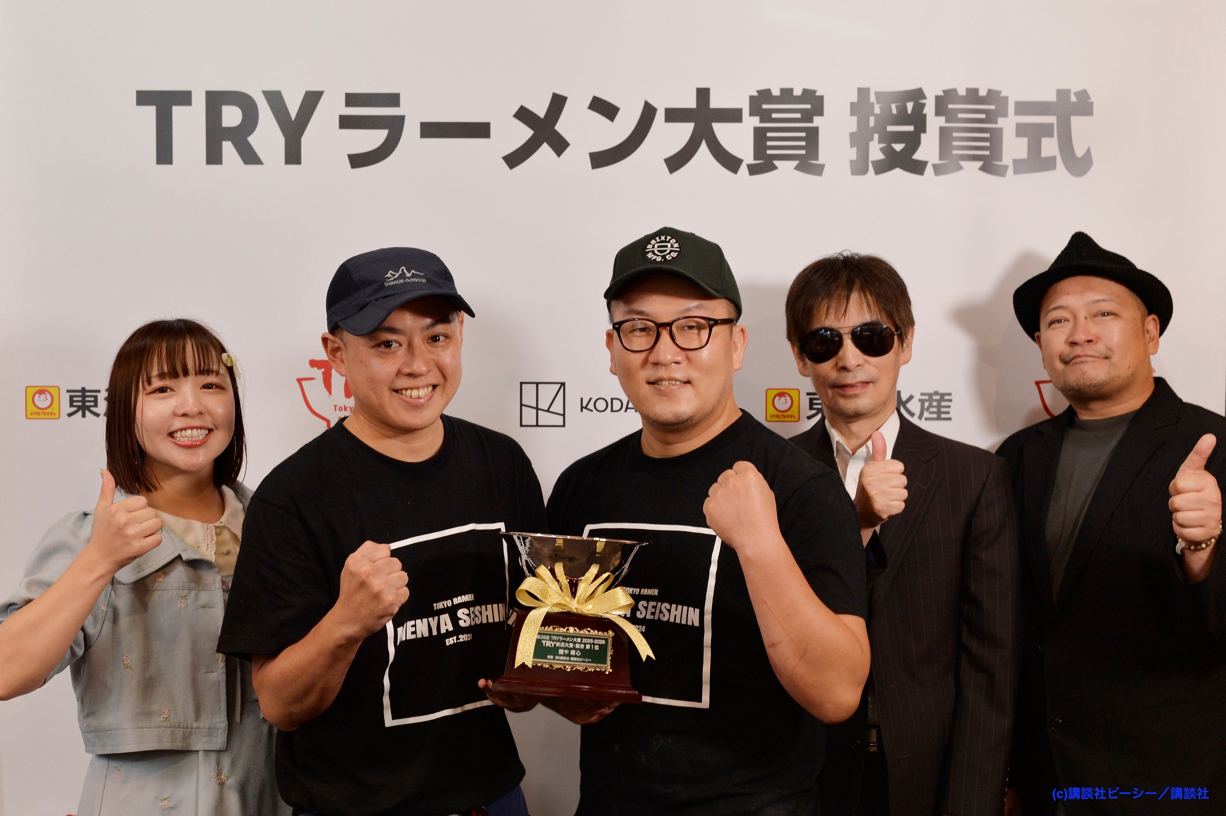 https://prcdn.freetls.fastly.net/release_image/1719/7793/1719-7793-a14863d8d5ecd76835fd2a8a3166eab7-3900×2596.jpg “I’m in charge of the Celebrity Restaurant category, but if I had the right to vote for new restaurants, I would have given this one a perfect score of 10,” said Celebrity Restaurant judge Yoshihiro Hoshino (far right). Ramen YouTuber Maamin (far left) also attended the awards ceremony as a special guest. “Menya Seishin”‘s right-hand man, Kyohei Shibuya (center left), owner Masahiro Takano (center), and new restaurant judge Ikemen (center right) (C) Kodansha BC/Kodansha And the new reigning champion of the “TRY Grand Prize,” the highest award given to the most outstanding restaurant among the many existing restaurants in Tokyo and the three surrounding prefectures, is … “Ramen Kanekatsu” in Kita-Urawa, Saitama!