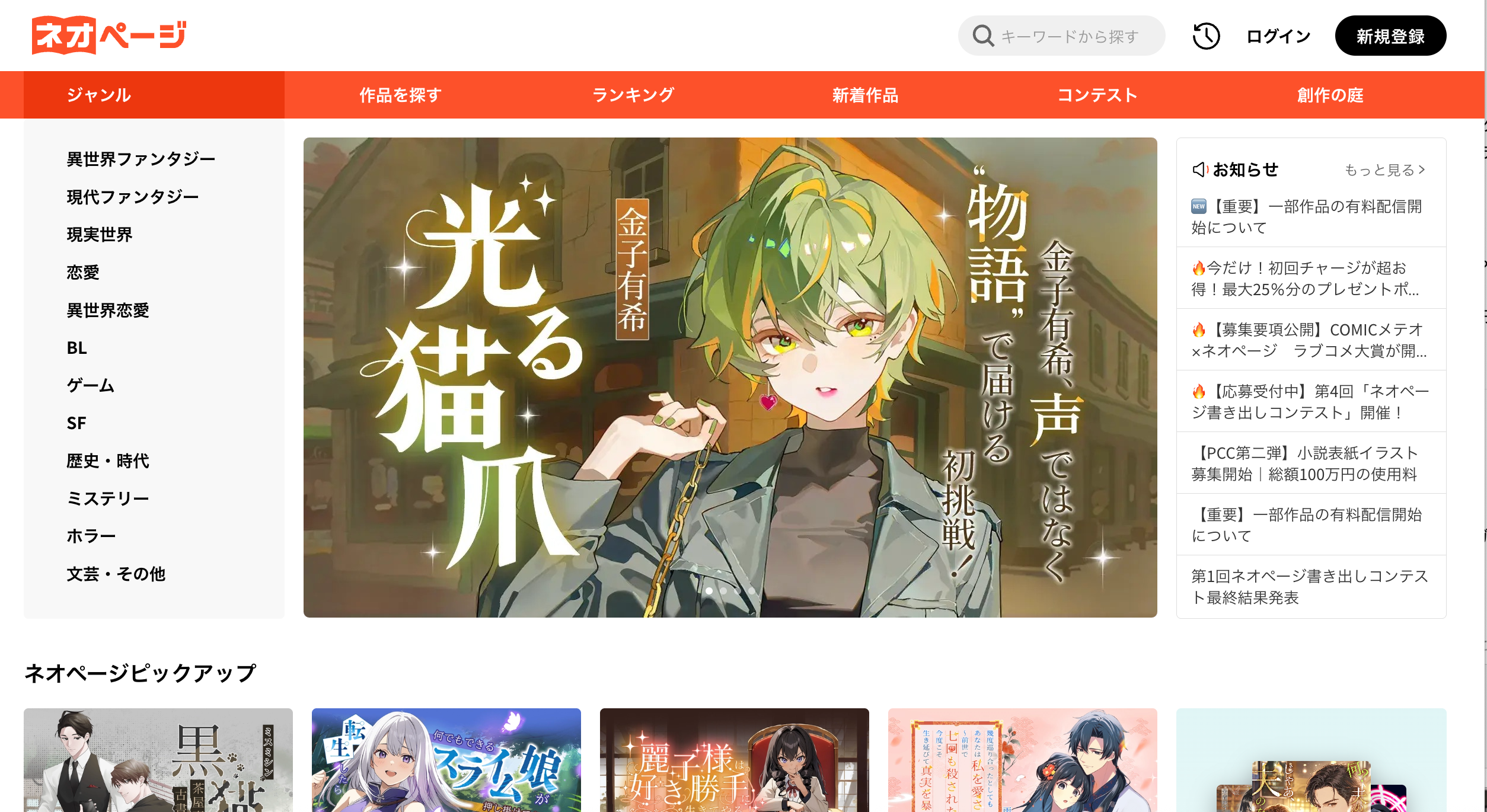 https://prcdn.freetls.fastly.net/release_image/144006/6/144006-6-e35fb91c9f10d7dc67920f91d7cd1353-2508×1370.png NeoPage homepage image of “Glowing Cat Claws” featuring the main character, Suzune Ogura “Glowing Cat Claws” work page: