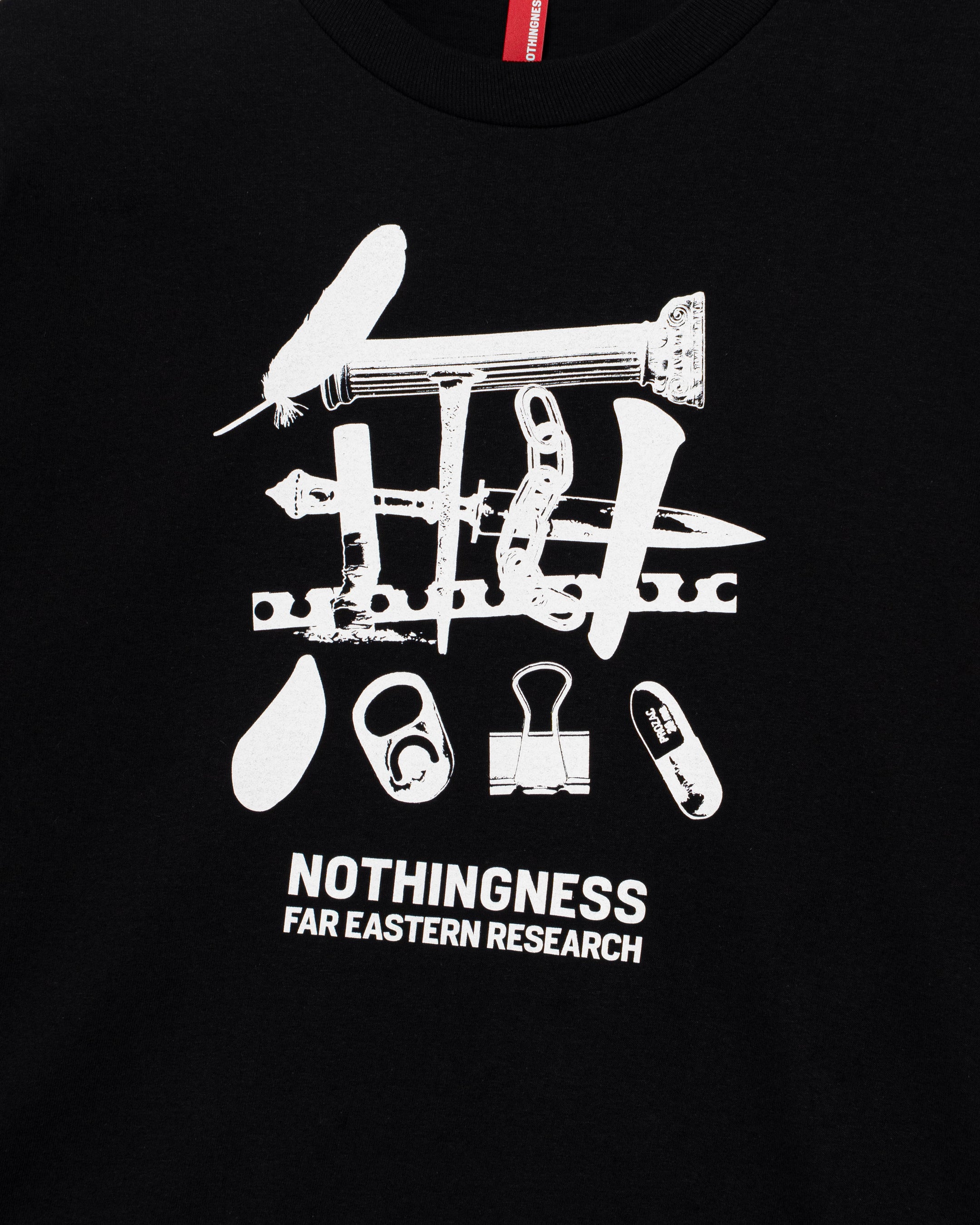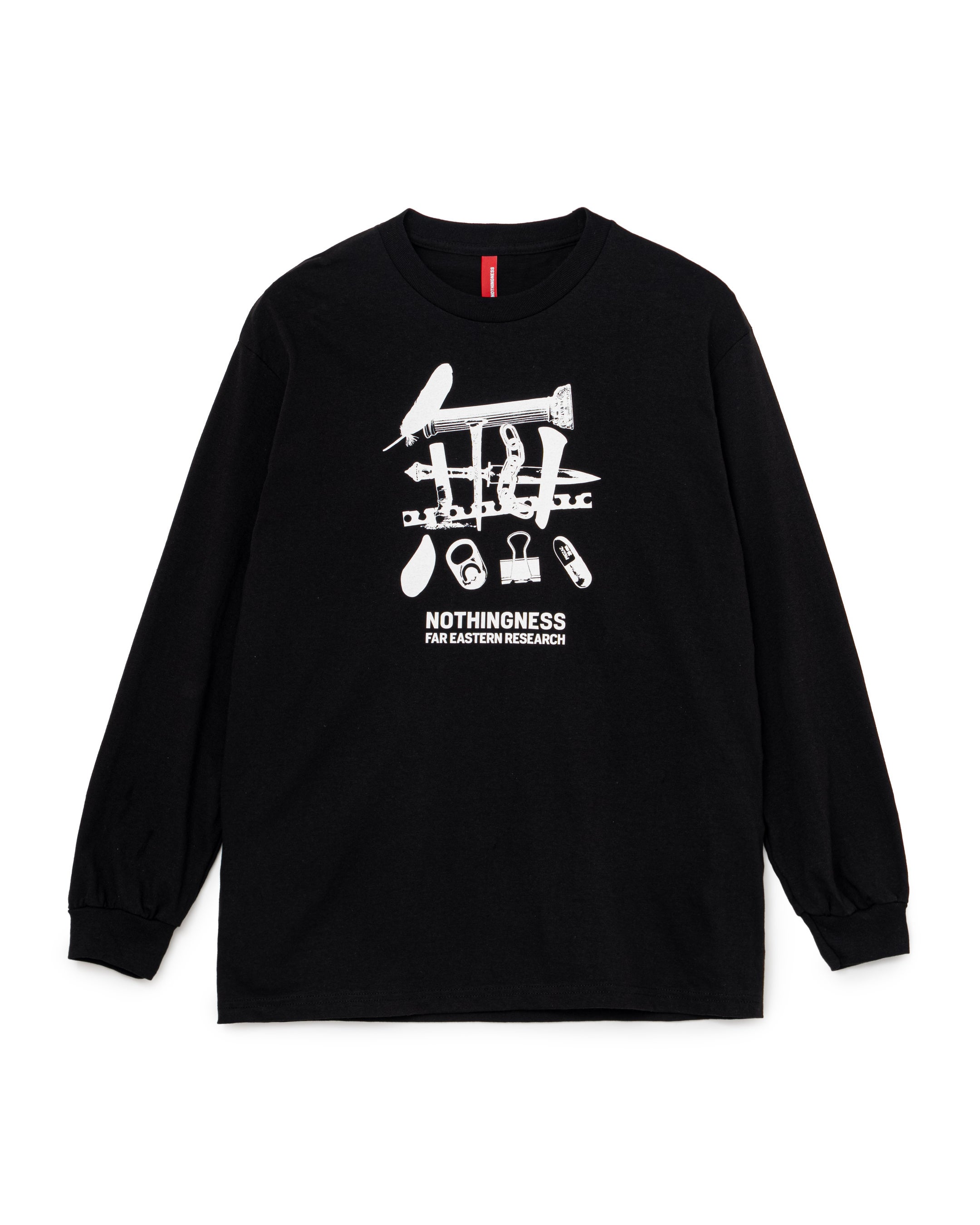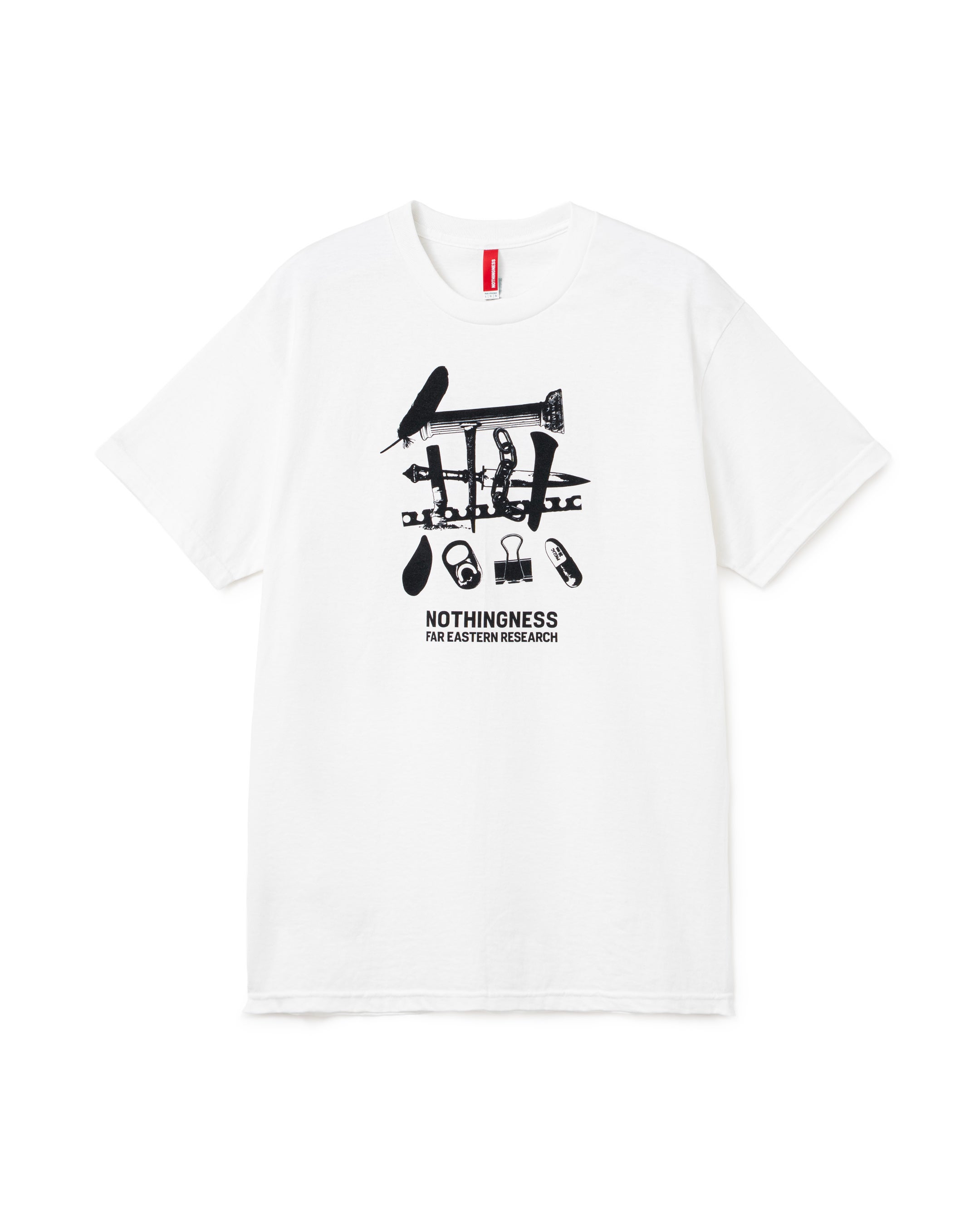 https://prcdn.freetls.fastly.net/release_image/165610/3/165610-3-3aaadbe50d88648859385e4a9cbe7ebf-2160×2700.jpg The design expresses “無,” the Japanese translation of “Nothingness,” in a graphic style characteristic of UNDERCOVER. The component parts of “無” (mu) are broken down and the radicals are replaced with various objects, resulting in a unique finish. The “UNDERCOVER” logo is placed on the back of the neck. The T-shirt comes in a white body with black print, while the long-sleeved version comes in a black body with white print. NOTHINGNESS × UNDERCOVER “MU” TEE Short sleeve: ¥8,800 (tax included) Long sleeve: ¥12,100 (tax included) Size: M, L, XL Image