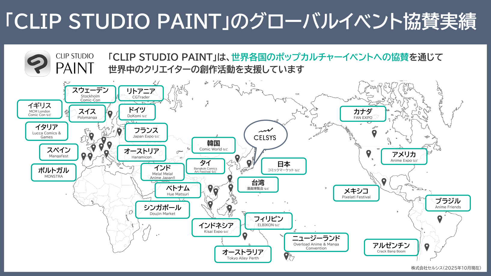 https://prcdn.freetls.fastly.net/release_image/5223/1034/5223-1034-4e6e3b293196966b0fa179b1e9420b1e-1635×919.png Celsys will continue to strengthen its global expansion by sponsoring events held in various countries and regions. Click here to see Celsys’ “overseas event and sponsorship” case studies