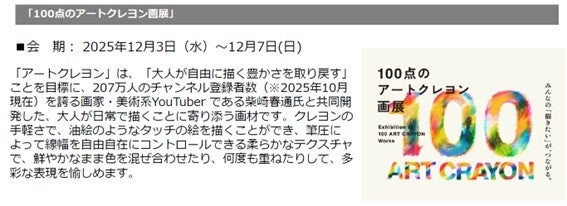 https://prcdn.freetls.fastly.net/release_image/15279/551/15279-551-e0c1e0b817add0447934591f4ec3612c-567×167.jpg Enjoy an unforgettable art experience at Hibiya OKUROJI. From October to December, Artober and DESIGNART TOKYO 2025, an exhibition of 100 crayon drawings, will invite visitors into the world of art. Enjoy an art experience that stimulates all five senses under the historic brick arches.