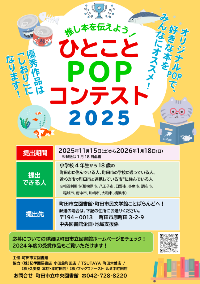 URL: Machida City Hall Press Release: October 21, 2025 [Machida City, Tokyo] “Let’s Share Our Favorite Books! One-Line POP Contest 2025” will be held.
