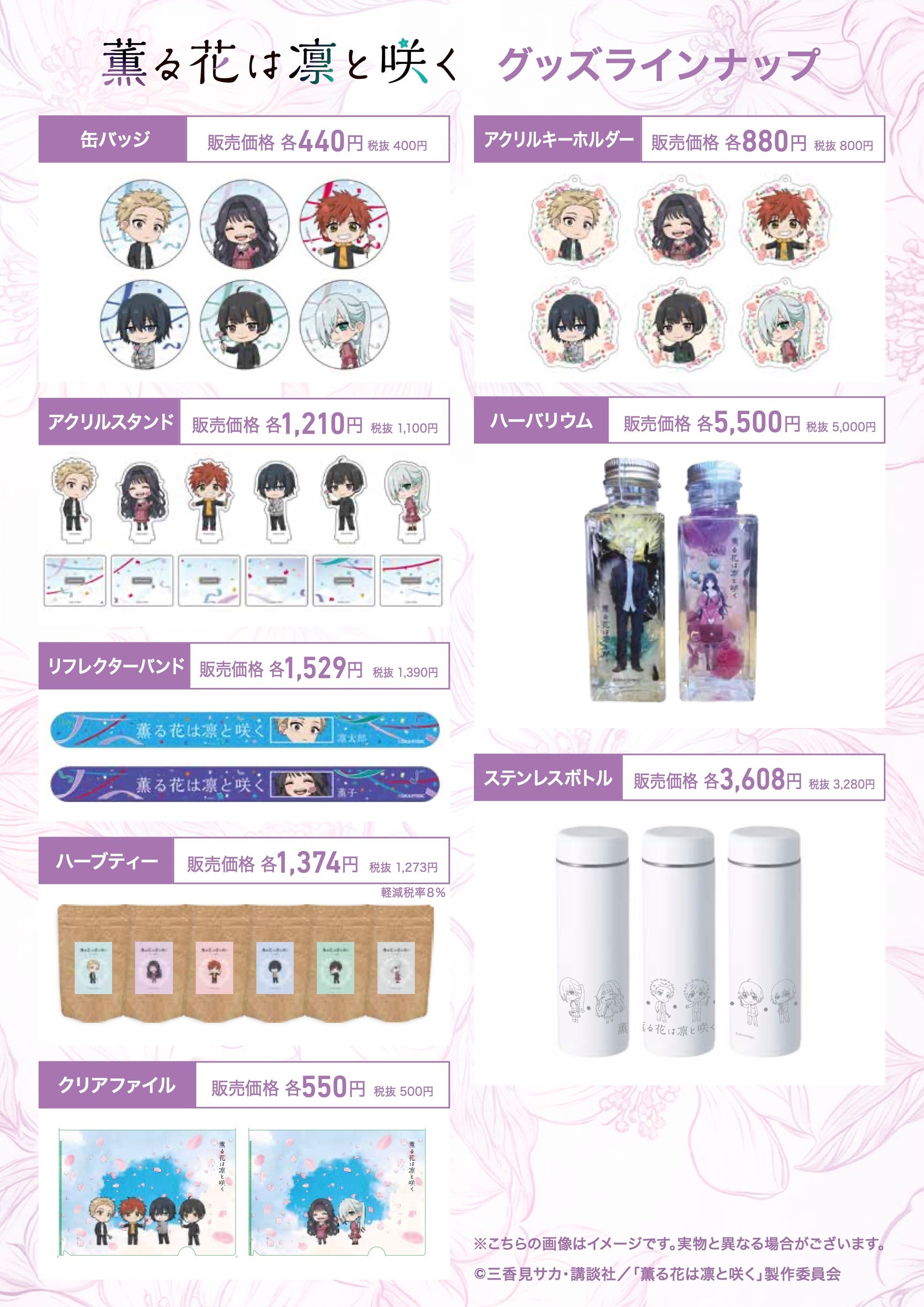 https://prcdn.freetls.fastly.net/release_image/102100/106/102100-106-4e1029e6c7c9a43070487d183c131c07-1909×2700.jpg (C) Mikami Saka, Kodansha / “Fragrant Flowers Bloom Boldly” Production Committee ※Images are for illustrative purposes only. *Please note that the actual product may differ. ■Product information Original Illustration Goods – Herbal Tea (6 varieties) – ¥1,375 each (reduced tax rate, tax included) – Acrylic Keychains (6 varieties) – ¥880 each (tax included) ・Acrylic Stands – 6 types, ¥1,210 each (tax included) ・Clear Files – 2 types, ¥550 each (tax included) ・Can Badges – 6 types, ¥440 each (tax included) ・Stainless Steel Mini Bottle – 1 type, ¥3,608 (tax included) ・Reflector Band – 2 types, ¥1,529 each (tax included) Anime illustration goods ・Herbarium (2 types) 5,500 yen (tax included) ■About the TV anime “Fragrant Flowers Bloom Bravely” “Fragrant Flowers Bloom Bravely” by Saka Mikami has been serialized on the official Weekly Shonen Magazine app “Magazine Pocket” since 2021. A heartwarming, pure, and heart-warming coming-of-age school story that will capture your heart with its honest feelings. This gentle and warm story stands out even among boys’ manga magazines and has been a hot topic since its serialization began. The total number of copies published has exceeded 5 million (as of June 2025). This hugely popular work will be adapted into a long-awaited TV anime in 2025! A talented staff has been assembled, led by director Miyuki Kuroki. Animation production is handled by CloverWorks, the studio behind numerous hit titles. A gem of a coming-of-age story brought to life in vivid color. [Inquiry] https://nrtv.co.jp/contact/ ■Company Profile Company Name: Narrative Inc. Address: 3F, 2-32-7 Higashiazabu, Minato-ku, Tokyo Established: February 1, 2022 Representative: President and Representative Director Takaki Ohara Business: Marketing, HR, PR URL: https://nrtv.co.jp/