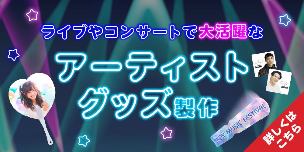 https://prcdn.freetls.fastly.net/release_image/142815/27/142815-27-b3451a4bdf25f092c73983b43d2cca45-750×750.jpg Enhance your photography at live venues. Creating artist goods perfect for live shows and concerts Daido Shikko offers a wide variety of merchandise that can be used in a variety of ways, such as selling merchandise with the artist’s portrait or distributing it as venue giveaways with the group name or tour name. We offer a wide range of products, from standard artist support goods like fans, to