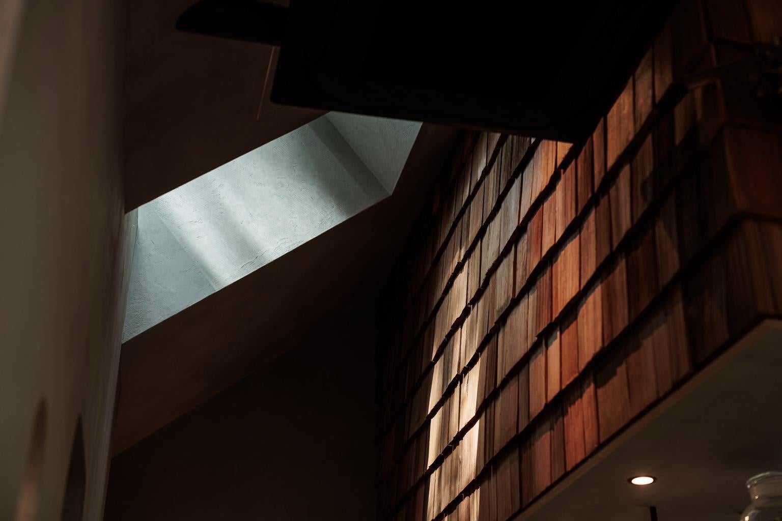 https://prcdn.freetls.fastly.net/release_image/171153/6/171153-6-2133a0c43605c746d5bba1f437519d59-1536×1023.jpg The design theme was the feeling of entering a “tree hollow,” and a nature roof was placed inside. The lighting was inspired by Mexican architecture, with light sources embedded in the walls and painted with the same material as the walls. The design allows the light to spread softly, creating a different look during the day and at night. Oya stone is used for the back of the wood stove, and square-shaped Asama stone is used for the floor.