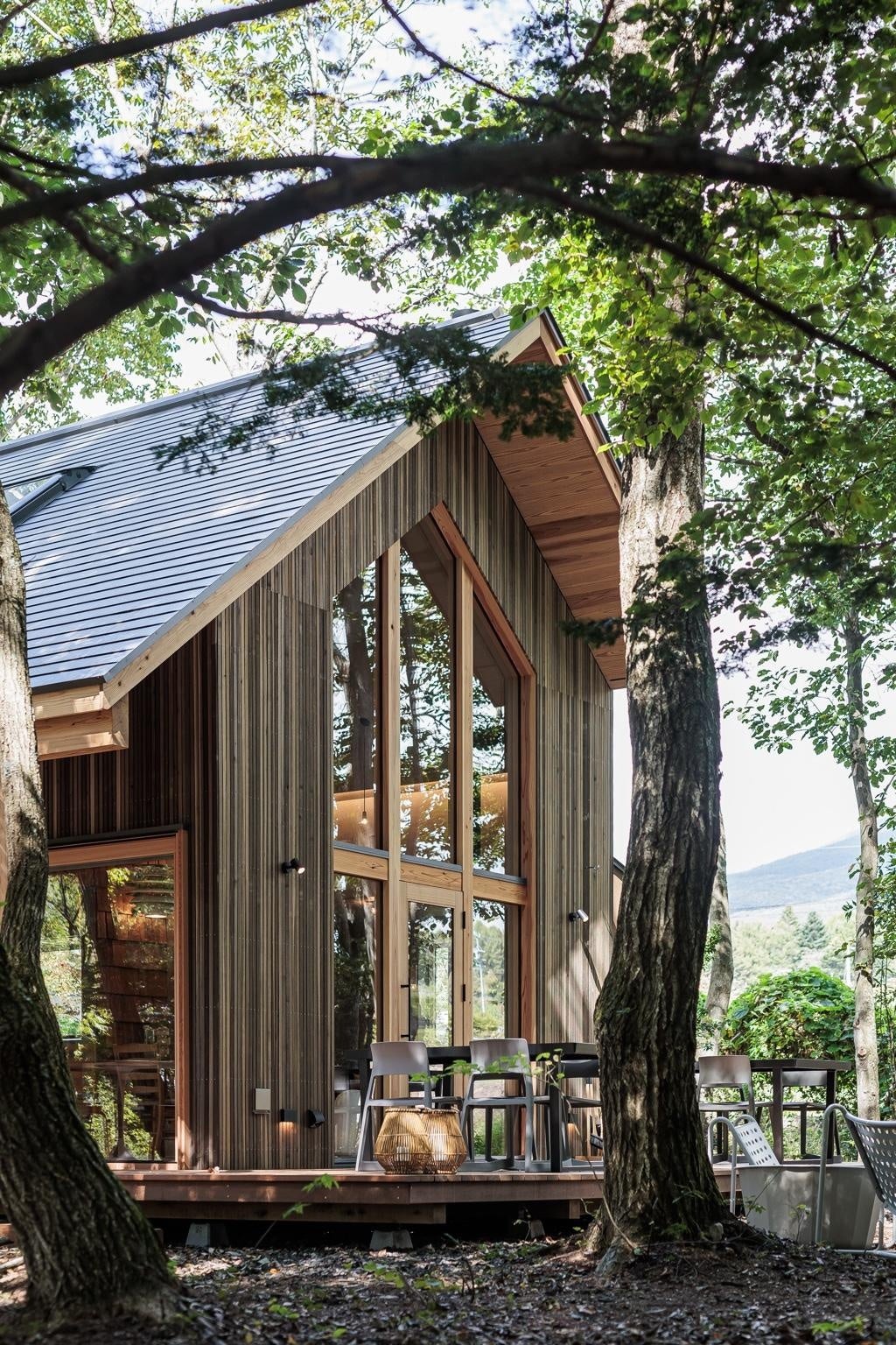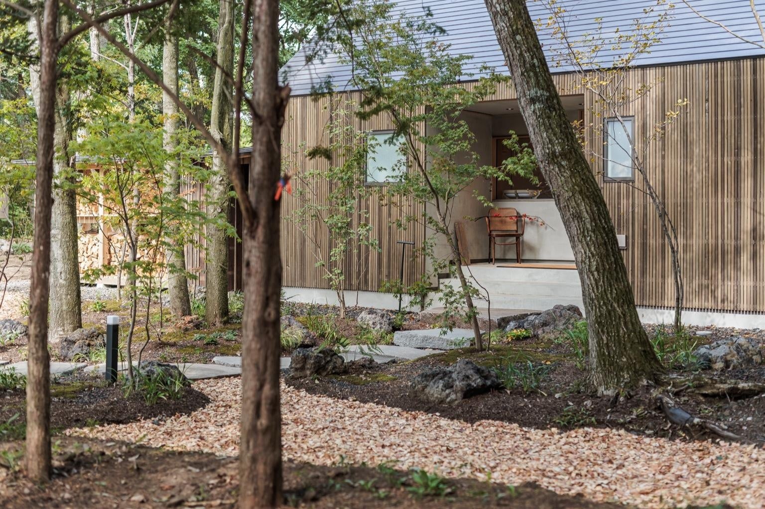 https://prcdn.freetls.fastly.net/release_image/171153/6/171153-6-f351a3fda0843933442287d43cbe37a4-1024×1536.jpg The exterior as seen from the dog run. The exterior walls and large church-like windows harmonize with the natural scenery. The building stands in a quiet forest overlooking Mount Asama. The parking lot is paved with crushed local Asama stone, and the approach is balanced with large Asama stone dug up during construction and plants native to Shinshu.
