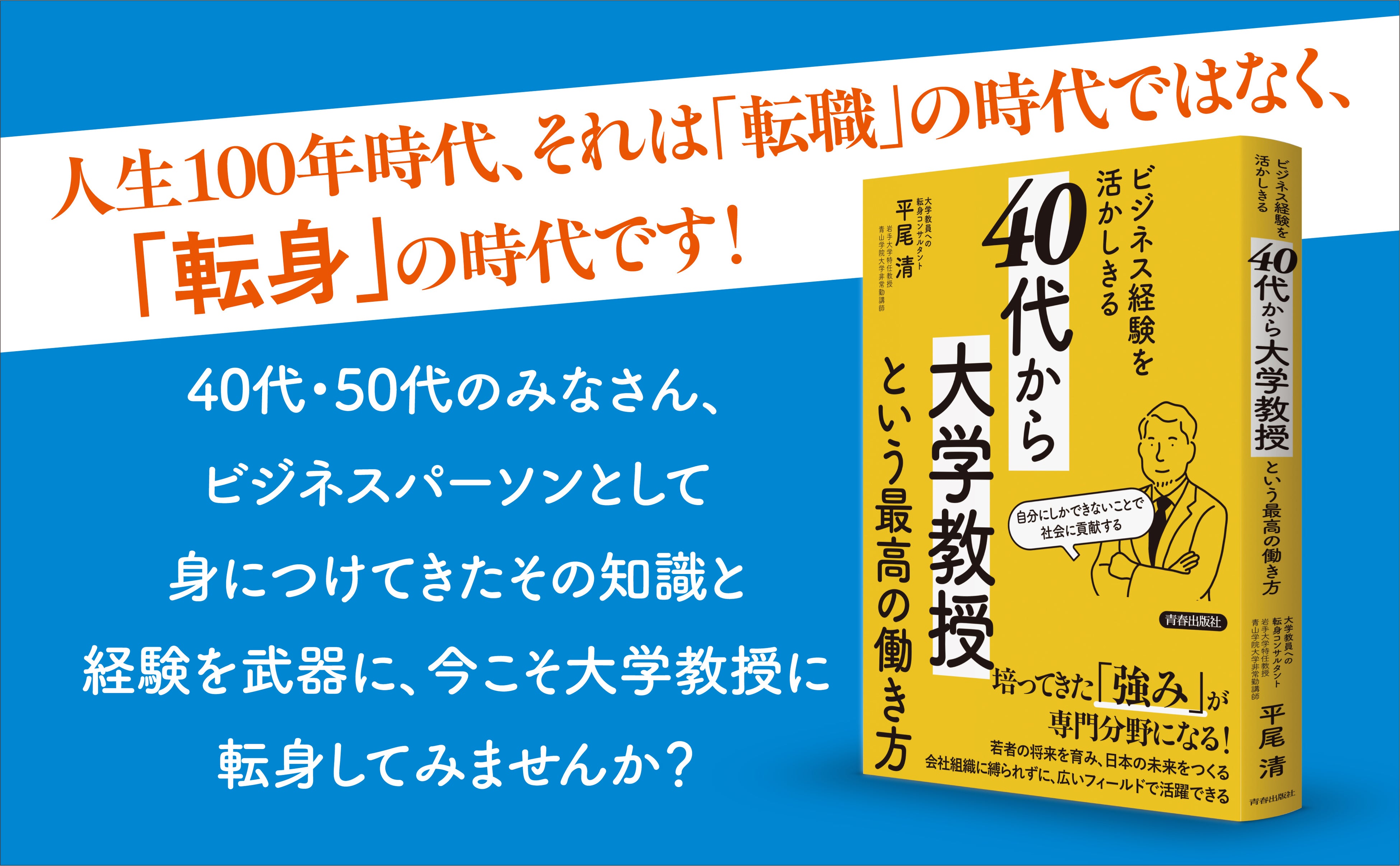 Seishun Publishing Co., Ltd. Press release: October 22, 2025 To Members of the Press The author, a consultant on career transitions to university teaching, a professor at Iwate University, and a part-time lecturer at Aoyama Gakuin University, teaches how business people in their 40s and 50s can become university professors! Seishun Publishing (Shinjuku-ku, Tokyo) released “Becoming a University Professor in Your 40s: The Best Way to Work and Make the Most of Your Business Experience” (by Kiyoshi Hirao) on October 22nd.