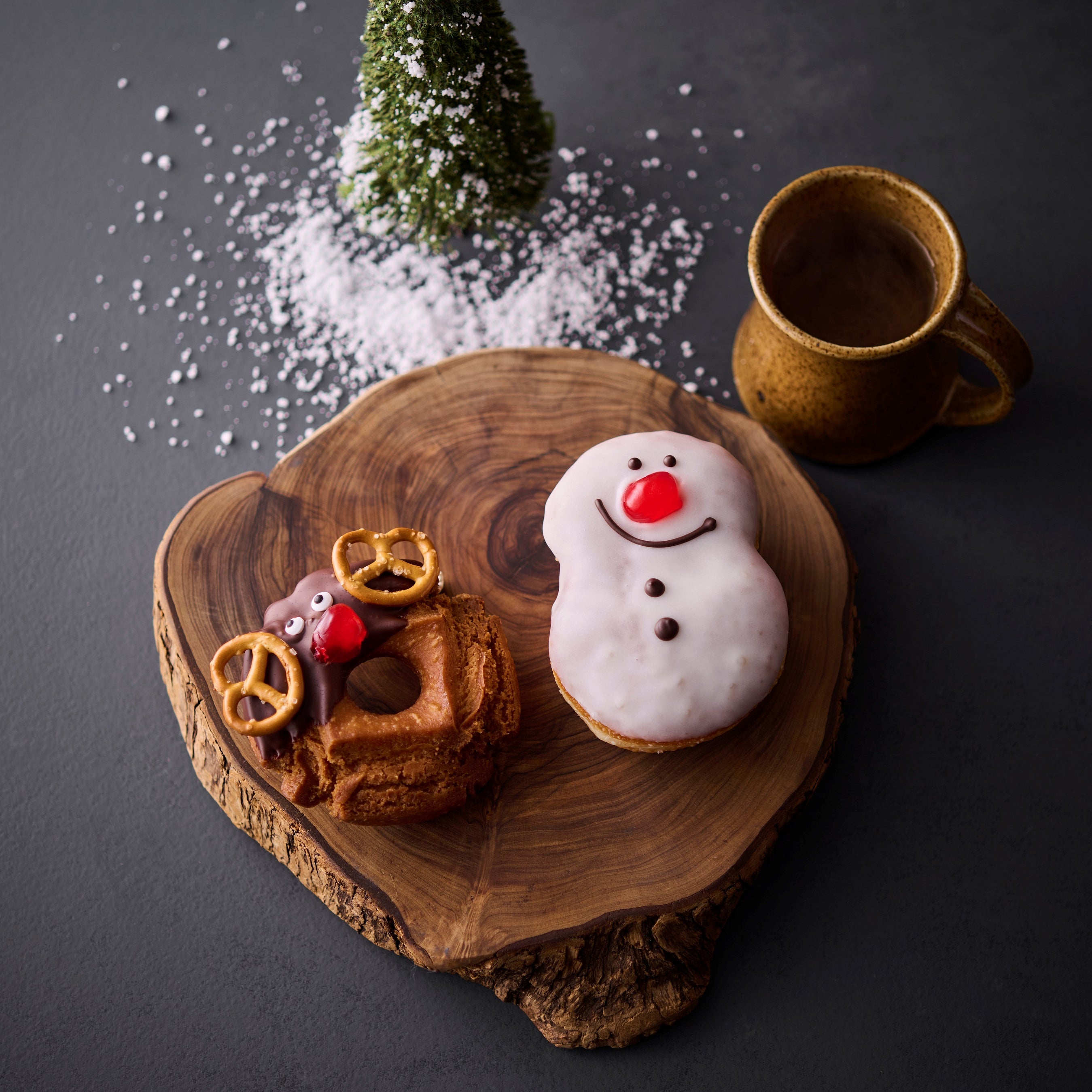 ポップでキュートなプラントベースのドーナツショップに、季節限定でスノーマンとトナカイが仲間入り。スノーマンは、もっちりとした生地をバニラグレーズでコーティング。トナカイは人気のオールドファッションにソルトプレッツェルでツノをつけた、とぼけた表情がかわいいデザインです。 販売期間:12月1日(月)~12月25日(木) ※1日各30個限定 ※六本木ヒルズ限定