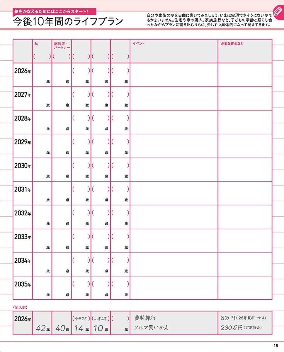 https://prcdn.freetls.fastly.net/release_image/2372/2712/2372-2712-afc5596368b668cf2a352d71d7bcdedf-3900×3900.jpg Illustrated bookmark matching the monthly index and cover It also comes with a variety of accessories, including bookmarks and indexes that can be cut out and used. It’s easy to customize and use. ● Extensive “Achieve Your Dreams” support page As you fill out your savings plan, annual schedule, 10-year life plan, and more, you’ll begin to see the path to your dreams.