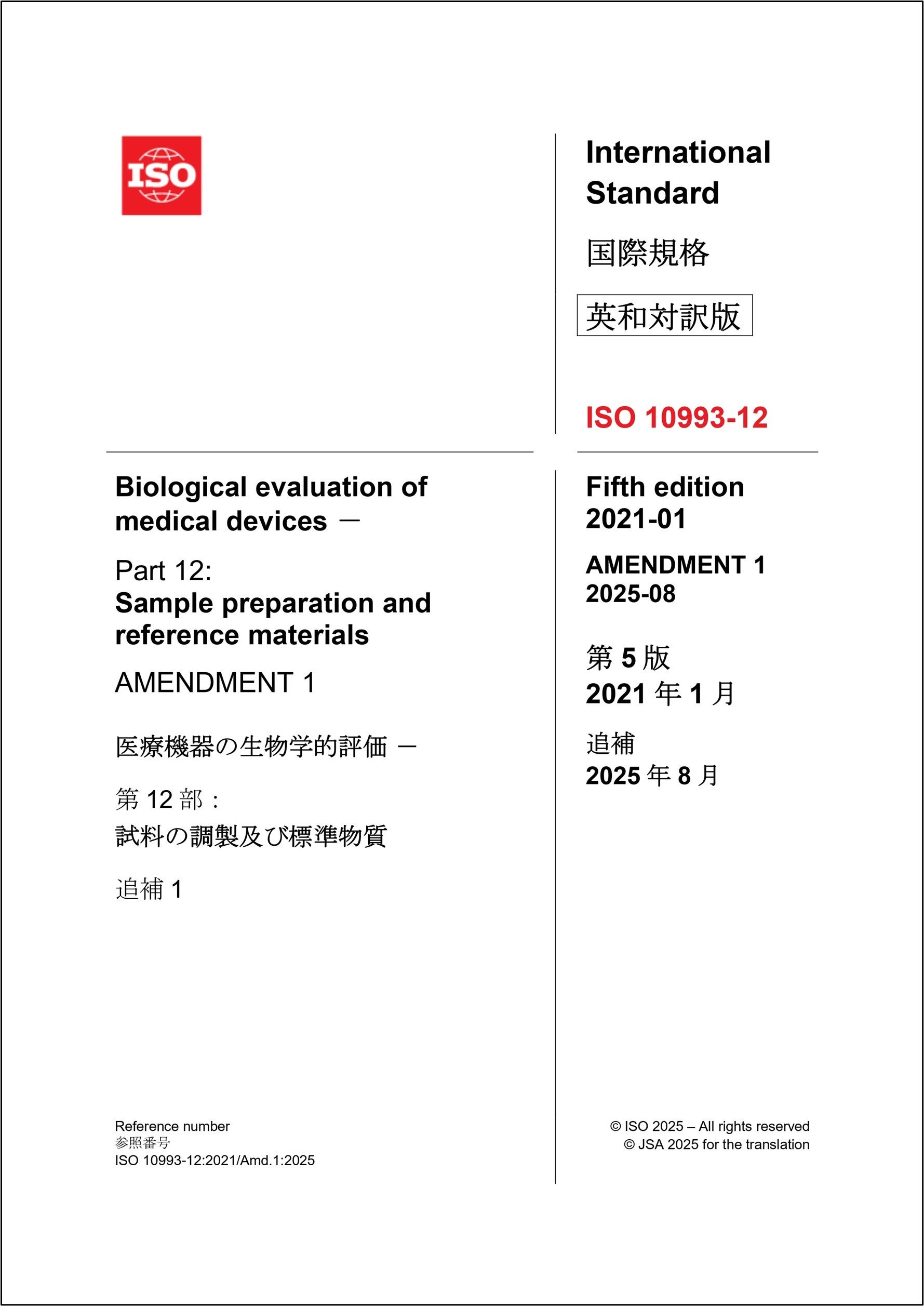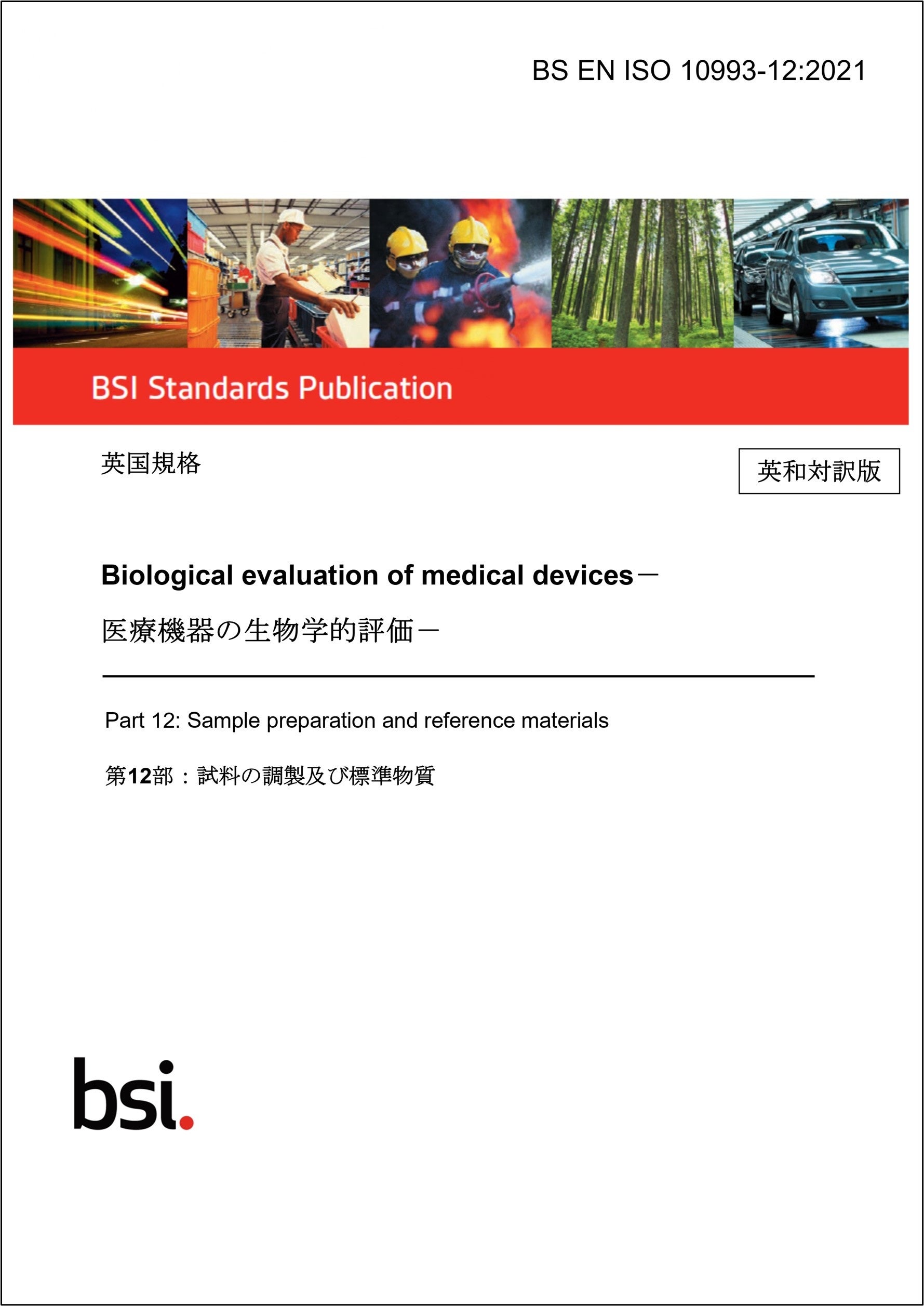 (English/Japanese)》Price including tax: 87,406 yen, A4 size, 66 pages This standard is the UK implementation of EN ISO 10993-12:2021 and is a part of the ISO This is a conforming standard to 10993-2:2021. Click here for purchase and details We also publish the latest version, which includes supplements. *Only the English version is available. Click here for the latest