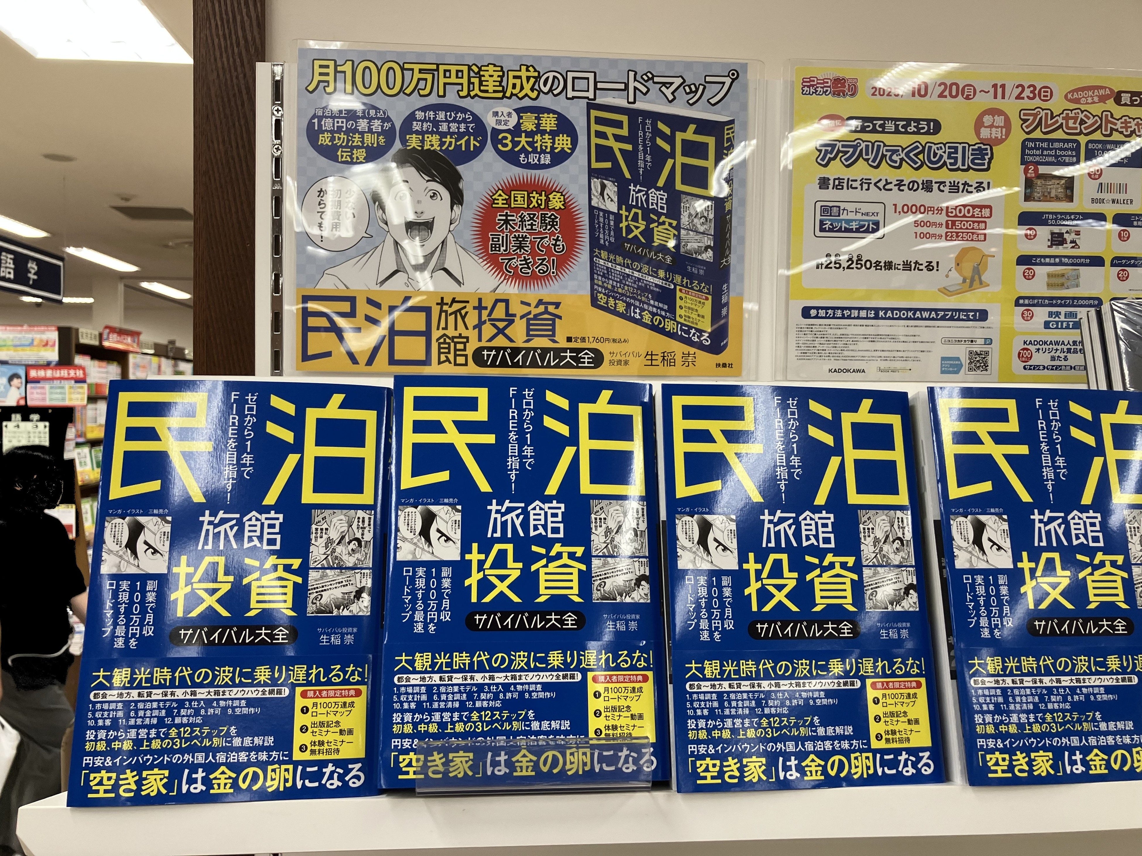 Special shelves available at major bookstores nationwide! “The Complete Guide to Investing in Private Lodging Inns and Inns: Survival Guide” (by Takashi Ikuina) is a hot topic—an unprecedented promotional campaign has been implemented, including an advertisement in the Nihon Keizai Shimbun newspaper and a pre-publication event.