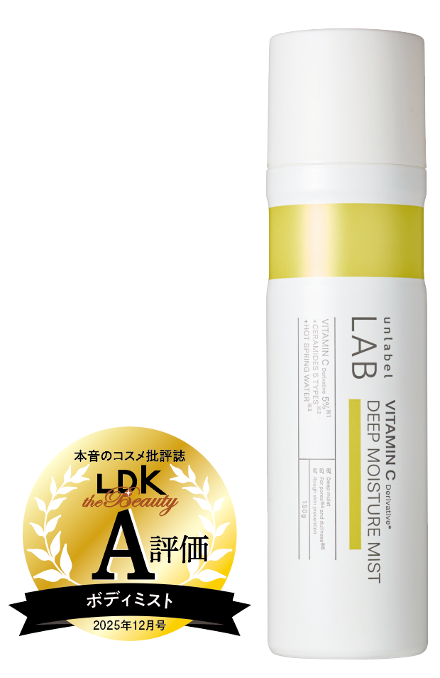 https://prcdn.freetls.fastly.net/release_image/17263/387/17263-387-9aae6b5652a68e6a9c1ff34d9dc0c98a-620×954.png Gentle spray for a comfortable feel on the skin (heart). Wrapped in a moisturizing film for lasting moisture. [Body Mist – A Rating] Unlabel Labo V Deep Moisture Mist Price: 1,980 yen / 150g In addition to ceramide, it also contains niacinamide, vitamin C derivatives, and ingredients to prevent rough skin. After spraying, when you lightly rub it into your hands, it feels a little oily, but it has been well received, with many users saying things like, “I’m glad that the mist keeps my skin moisturized for a long time.” It also has excellent moisturizing power. The mist is so fine that it can be used over makeup, making it a great way to quickly moisturize your skin even when you’re out and about. Moisturizing power: 4.0/5 points