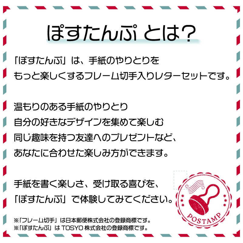 https://prcdn.freetls.fastly.net/release_image/26614/51/26614-51-5e4797ec46c1b36f5d37f32d7ded9a5d-570×570.jpg 【Set Contents】 ・Framed stamps (1 x 85 yen stamp, 1 x 110 yen stamp) ・Postcard x 1 ・Envelope x 1 ・Notepaper x 2 *”Framed Stamps” is a registered trademark of Japan Post Co., Ltd. *”Postamp” is a registered trademark of TOSYO Corporation. Post Stamp & Framed Stamp Set Series
