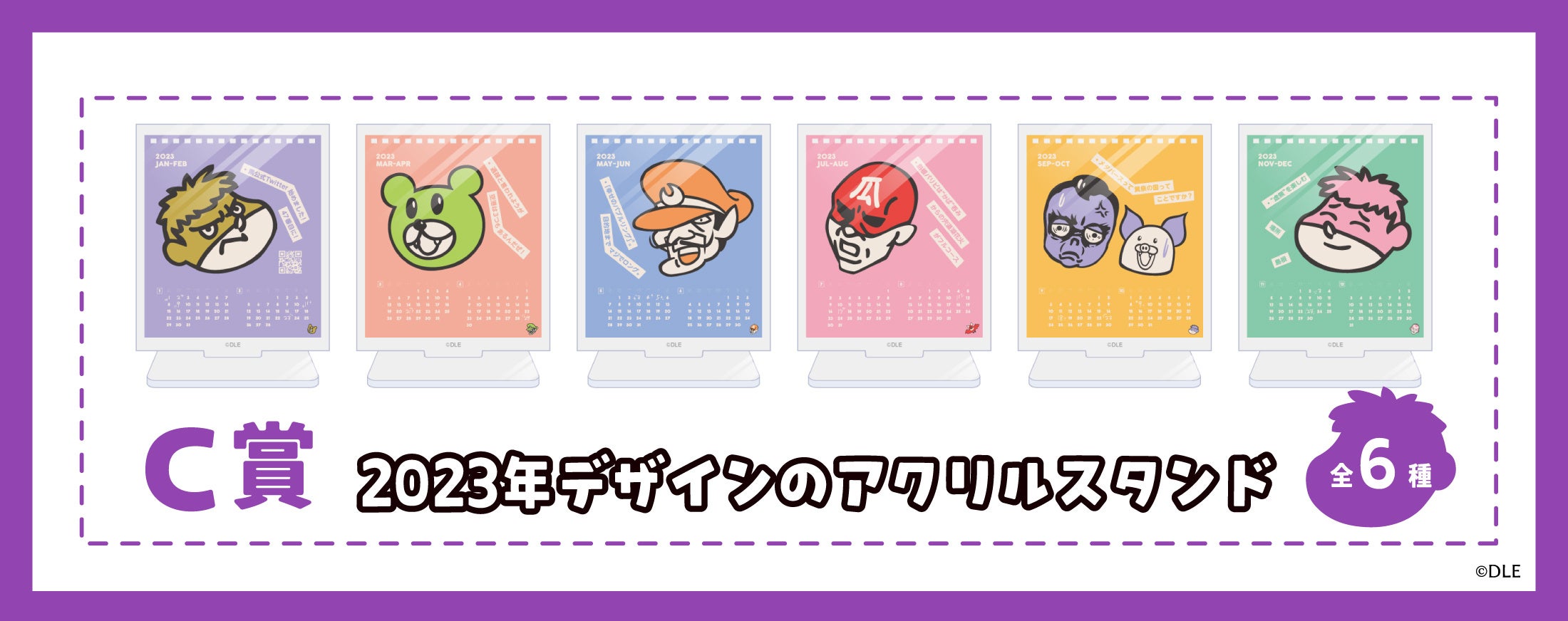 https://prcdn.freetls.fastly.net/release_image/26677/268/26677-268-c14b9734fadac64ae5547dc50bd52036-2200×872.jpg [Prize B] 2021 Design Acrylic Stand (6 types) *You will receive one of the six types. *You cannot choose the type. Product size: Main unit approximately W50 x H60mm / Base approximately W40 x H30mm Images are for illustrative purposes only. Actual product may differ. 【Prize C】2021 Design Acrylic Stand (6 types)