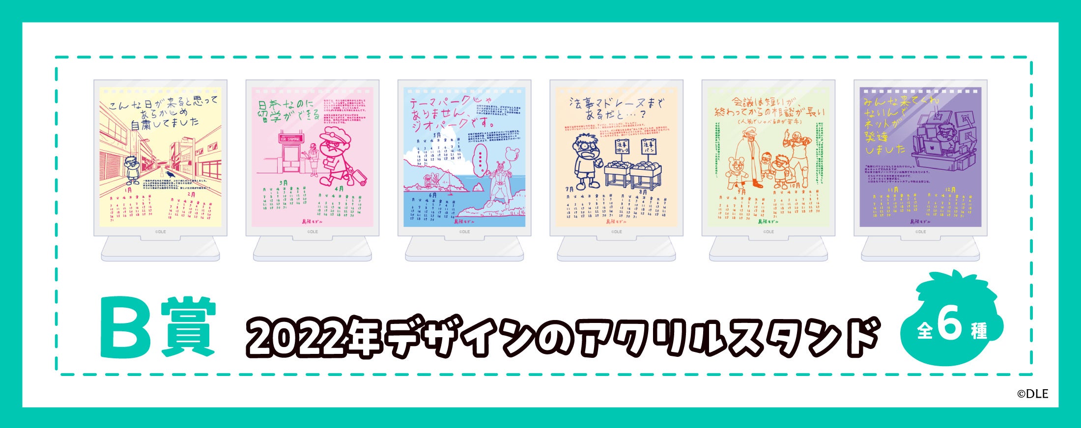 https://prcdn.freetls.fastly.net/release_image/26677/268/26677-268-21ae858f6cadcc38167f1d017f0ebeb8-2200×1280.jpg [Prize A] 2021 Design Acrylic Stand (12 designs) *You will receive one of the 12 types. *You cannot choose the type. *Product size: Main unit approximately W50 x H60mm / Base approximately W40 x H30mm *Images are for illustrative purposes only. Actual product may differ. [Prize B] 2021 Design Acrylic Stand (6 types)
