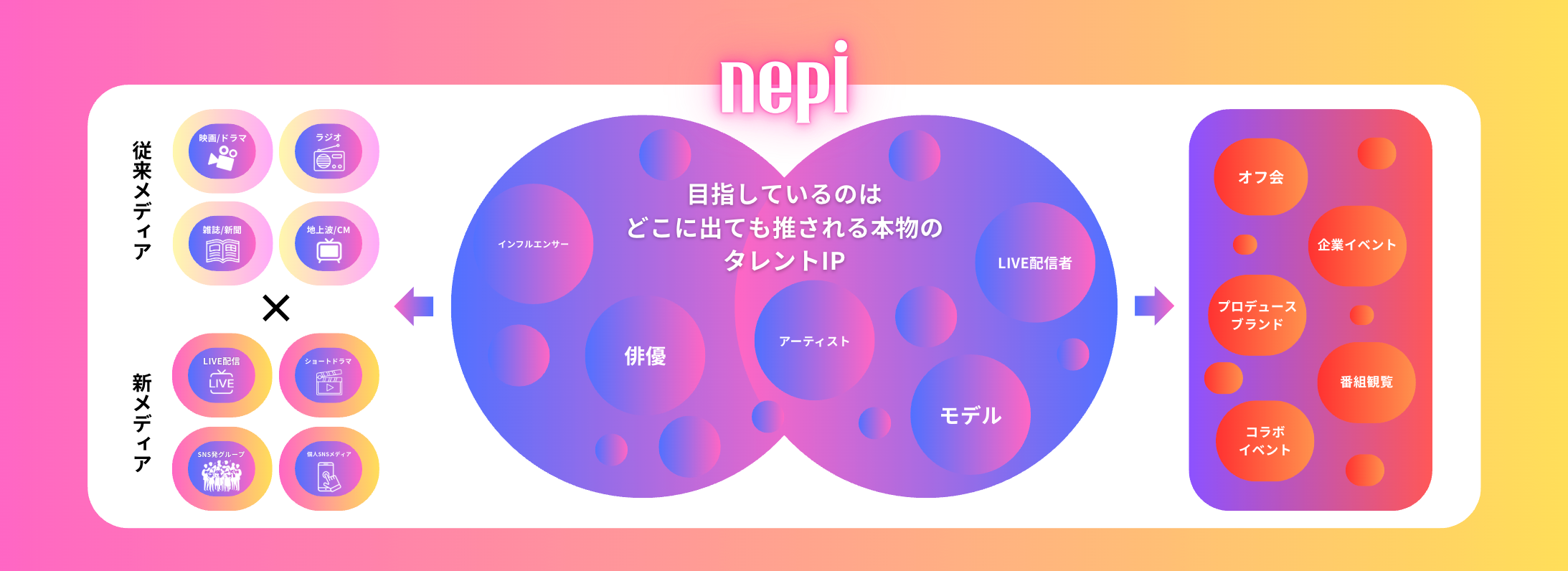 Rainbow, Full Moon, and Co., Ltd. Press release: October 23, 2025 To Members of the Press Niji and Mangetsu have launched “nepi,” a label that creates “genuine talent that will be promoted wherever they go.” Produce your social media success and make your lifelong dreams come true. Niji to Mangetsu to Co., Ltd. (Headquarters: Minato-ku, Tokyo; CEO: Kaito Nishimura), a company specializing in youth marketing, has launched “nepi,” a production label that creates authentic talent IP that will be promoted wherever it appears. Leveraging the social media management know-how we have cultivated through our social media marketing efforts, we produce social media accounts focused on individuals, nurturing and debuting talent.