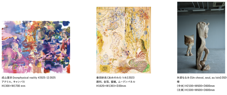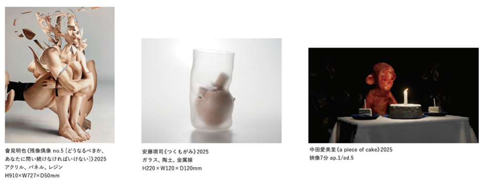 recommended artists or those selected through public competition. *As of October 23, 2025 Akiya Aimi [Kaori Usukubo] / Fumimaro Ayano [Yuichiro Tamura] / Koji Ando [Open call] / Ikenana [Robert Platt] / Nanae Ijichi [Open call] / Ibuki Inoue [Kaori Usukubo] / Iyanaga Yuriko [open call] / Ogasawara Shu [Yanobe Kenji] / Okada Mayumi [Tsuda Michiko] / Kobayashi Taro [Nawa Kohei] / Sakai Chiaki [Kato Izumi] / Sawa Amo Aiko [open call] / Shinagawa Mika [open call] / Shiraishi Kosai [Kitou Kengo] / Shirahata Hanako [Ikeda Mitsuhiro] / Takahashi Rin [Tamura Yuichiro] / Cho Eunyoung [open call] / Tsuji Daiki [Sasaoka Yuriko] / Tsubakino Narumi [Oba Daisuke] / Thomas Pepito Vauthier (Thomas Pepito Vauthier) [Open Call] / Manami Nakata [Shinji Omaki] / Daisuke Nagata [Ryudai Takano] / Rin Nakanishi [Yotta] / Yuki Nakatani [Open Call] / Ai Nariyama [Mai Miyake] / Manaka Shame 9↙ [Noboru Tsubaki] / Sho Hasegawa [Open Call] / Sara Haruta [Daisuke Oba] / Satomi Hirose [Shinji Omaki] / Ikuya Hirota [Kohei Nawa] / Takumi Horie [Michiko Tsuda] / Akane Masaki [Robert Platt] / Hinako Matsuoka [Open Call] / Yuho Matsuoka [Kengo Kito] / Mio Mishima [Yuriko Sasaoka] / Min Li-San (Min Li-Sen) [Mai Miyake] / Monami Yabe [Noboru Tsubaki] / Masaki Yamashita [Mitsuhiro Ikeda] / Rebecca Drolen (Rebecca Drolen) [Osamu James Nakagawa] / Liliana Guzman (Liliana Guzman) [Osamu James Nakagawa] ■ Images of works by participating artists (selection)