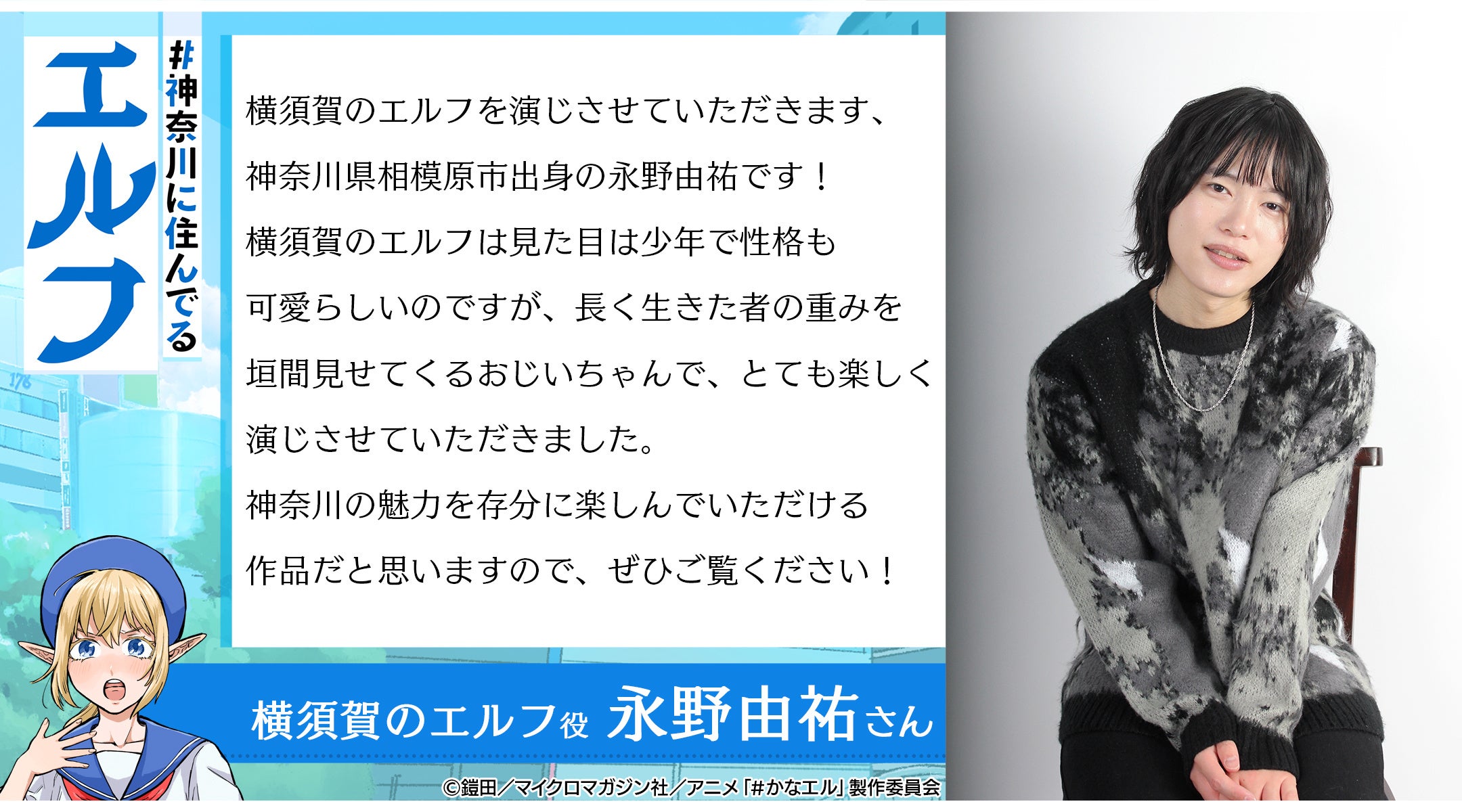 https://prcdn.freetls.fastly.net/release_image/7785/1591/7785-1591-4bab92d9fc8a842f7f221e38dd32fda2-2160×1200.jpg ■Synopsis The elves, whose forest homes were once burned down, once lived in Kanagawa. Kanagawa Prefecture is located directly below Tokyo. Yokohama, Yokosuka, Chigasaki, Sagamihara… Elves live ordinary lives in various places, but not in hiding. This modern fantasy comedy centers around the “Yokohama Elf” and the “Kawasaki People” who can’t help but feel compelled to leave him alone, and weaves together the “elves living in Kanagawa Prefecture” who have become completely accustomed to modern Japan! ■Official website of the work https://animationid.com/kanael ■Broadcast Information ・Broadcast Start: Thursday, December 4, 2025 Broadcasting Station: tvk Television Kanagawa Broadcast Time: Every Thursday from 12:00 to 13:30, within the “Neko no Hitai Hodo Wide” program *As it is broadcast in the “3-station network time slot” from 12:00 to 12:30, it can also be viewed on Chiba TV and Teletama. ■Rebroadcast – Every Thursday from 10:00 PM to 10:55 PM “Neko no Hitai Hodo Wide” – Every Tuesday from 10:55 PM to 11:00 PM *Starts December 9th ■Streaming Catch-up streaming available on TVer *The distribution schedule for other video streaming services will be announced at a later date. ■Original Information “#ElfLivingInKanagawa” Original work: Yoroida (Comic ELMO/Micro Magazine) Volumes 1 through 5 are currently on sale! https://comicelmo.jp/detail/kanael/ ■Official SNS Drama/Anime Official X: @kanael_tvk Official YouTube: @tvk3ch Official TikTok: