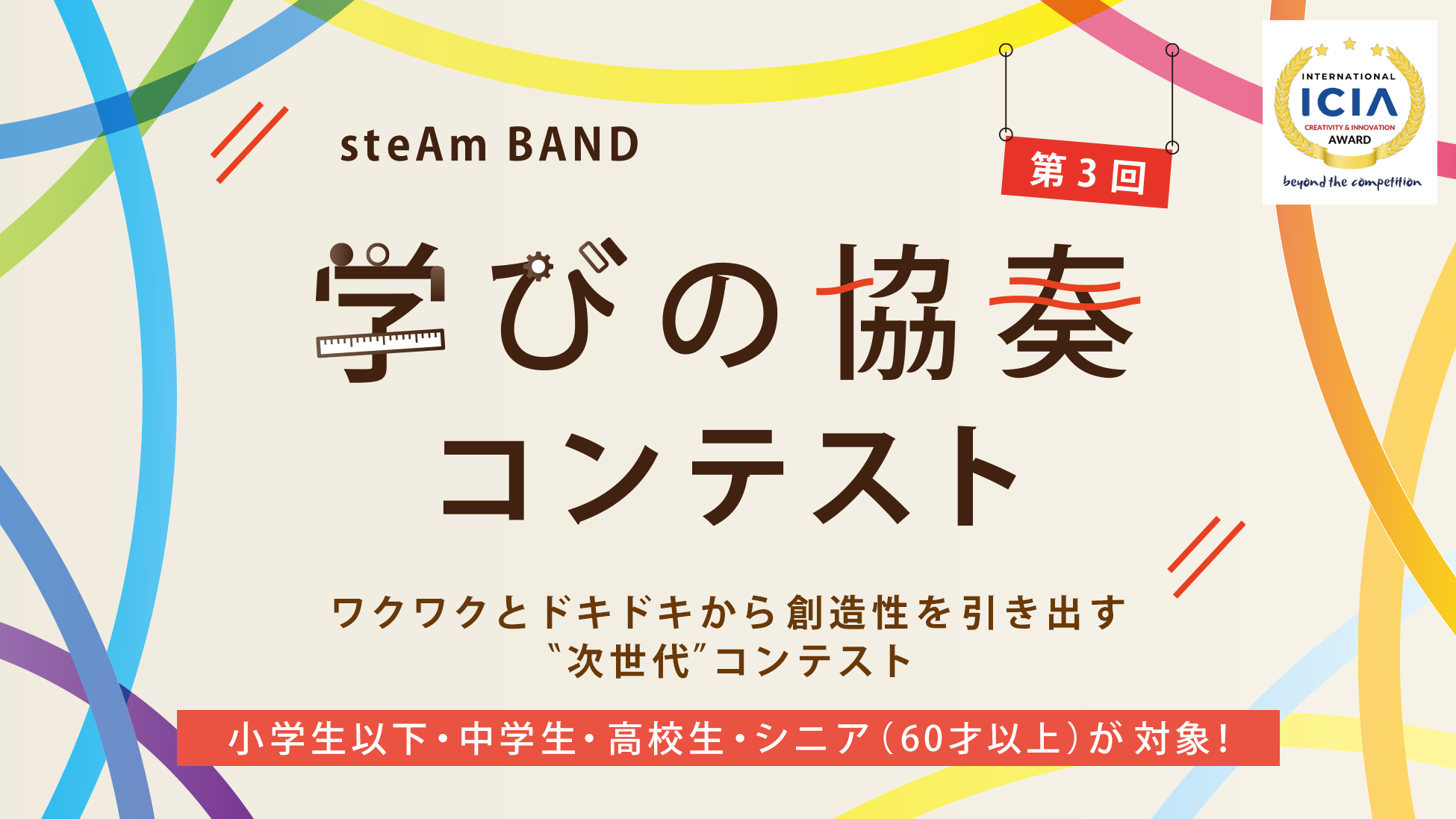 URL: steAm Co., Ltd. Press release: October 23, 2025 To Members of the Press [steAm BAND General Incorporated Association] Let’s develop our “inner questions” into an inquiry project ~ Entries are now open for the “3rd Learning Concert Contest”! The deadline for mentoring reservations is Wednesday, October 29th. ~Winners will also be recommended to represent Japan at the International Creativity & Innovation Awards (ICIA) 2026 World Finals (Cambodia)! ~