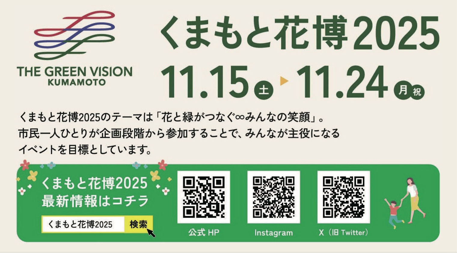 https://prcdn.freetls.fastly.net/release_image/7192/5/7192-5-0e61c04bef28a173fb8a5cc2008c6381-1520×842.png Kumamoto Flower Expo 2025 Announcement 【Stage & Event Schedule】 Saturday, October 25th Hosted by: Ruri & Mai Kano Opening (11:00 AM) The MC will announce the opening, introduce the sponsors, and begin distributing raffle tickets! (Distribution is scheduled for around 11:30 AM) *Maybe… that artist who’s in Kumamoto that day?!!! But… it’s KumaHaro! SPECIAL Live Local singer-songwriter Akari Okada. (Akari Okada) Autumn Lucky Grand Raffle supported by JA Kumamoto City (1st draw from 1:00 PM / 2nd draw from 5:00 PM) Two free draws for the first 100 people! Win JA Kumamoto City specialties and sweets, as well as luxurious prizes from our sponsors! Costume Singing Contest supported by the child-rearing support organization “Hapisuma” (2:00 PM – 3:30 PM) Hosted by Kumamoto-born enka singer Suzuka Shiranui. A popular stage show for kids where they can sing in costume! Clean-Up Campaign (From 4:00 PM) A beautification event where parents and children clean up the city. Participants will receive sweets and toys! Kuma Haro Costume Contest (18:00-19:30) The main event every year is the Kuma Haro Costume Contest!