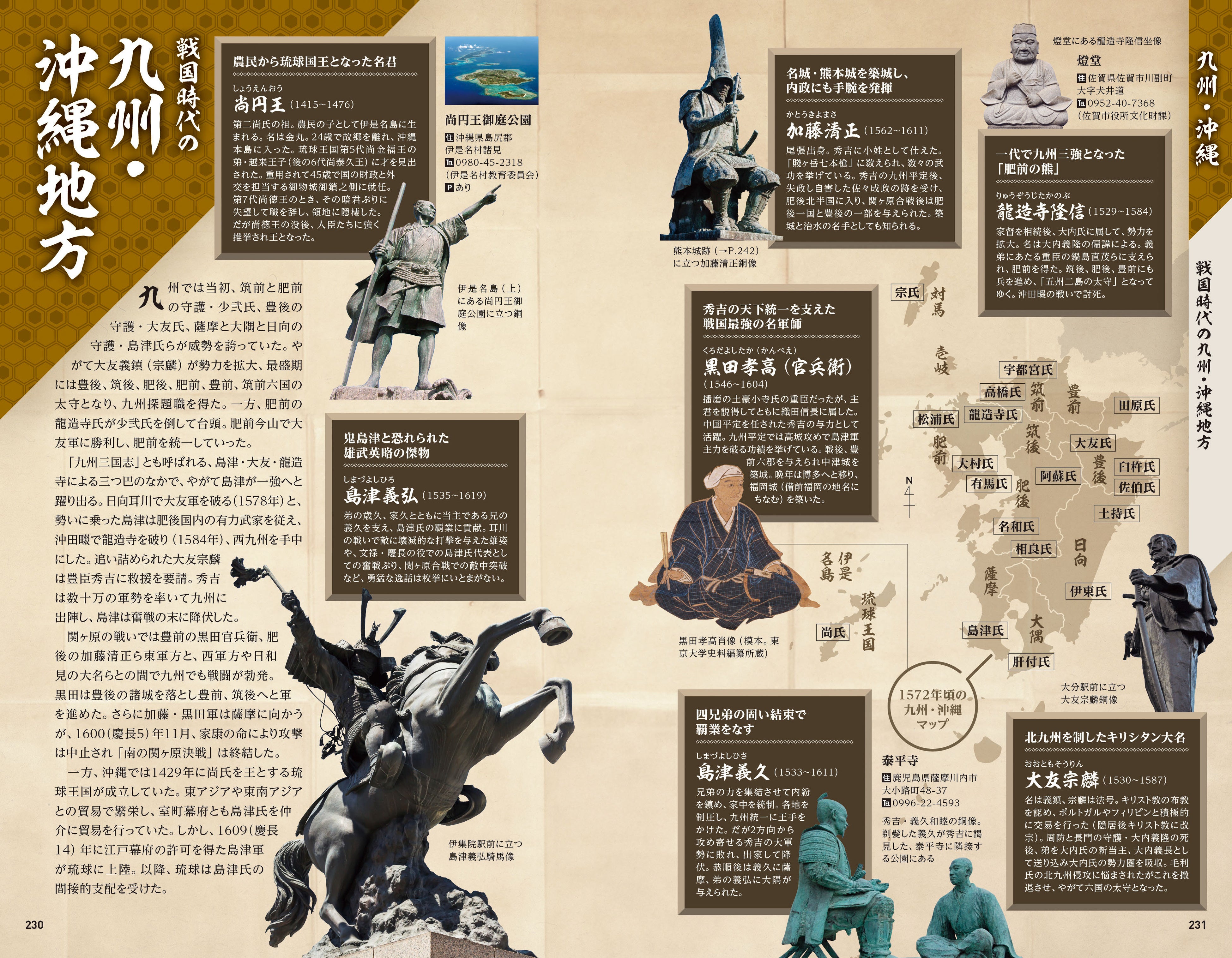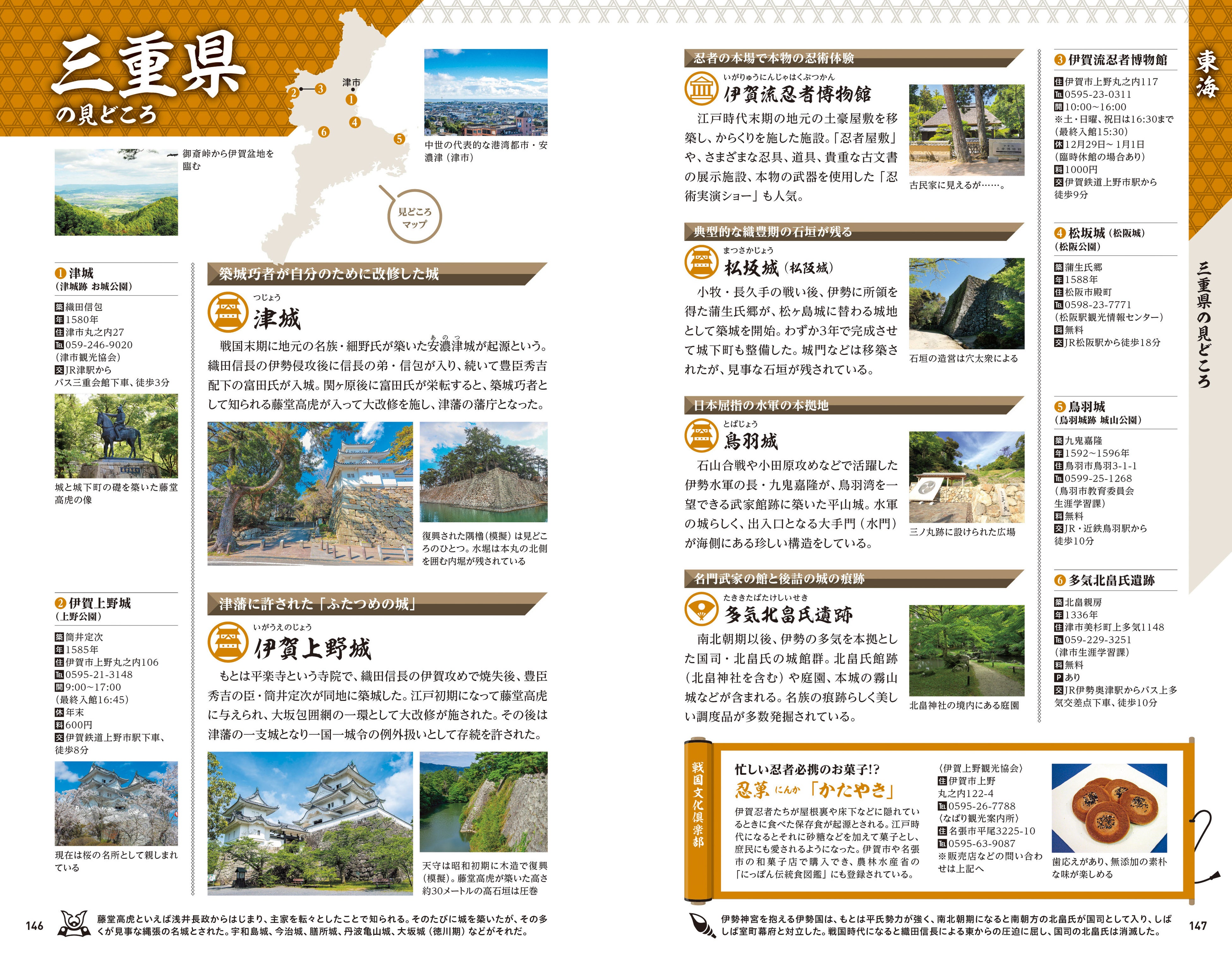 https://prcdn.freetls.fastly.net/release_image/2535/8299/2535-8299-a9cc4526335925d9a5912279656423dd-3900×3034.jpg ▼ Sightseeing spots page divided by area! Explains the main events of the Sengoku period in each region, including who lived there and what path they took. Next, suggests a travel plan for a roughly two-day tour, focusing on the region’s famous warlords and facilities. Sightseeing spots are introduced by prefecture.