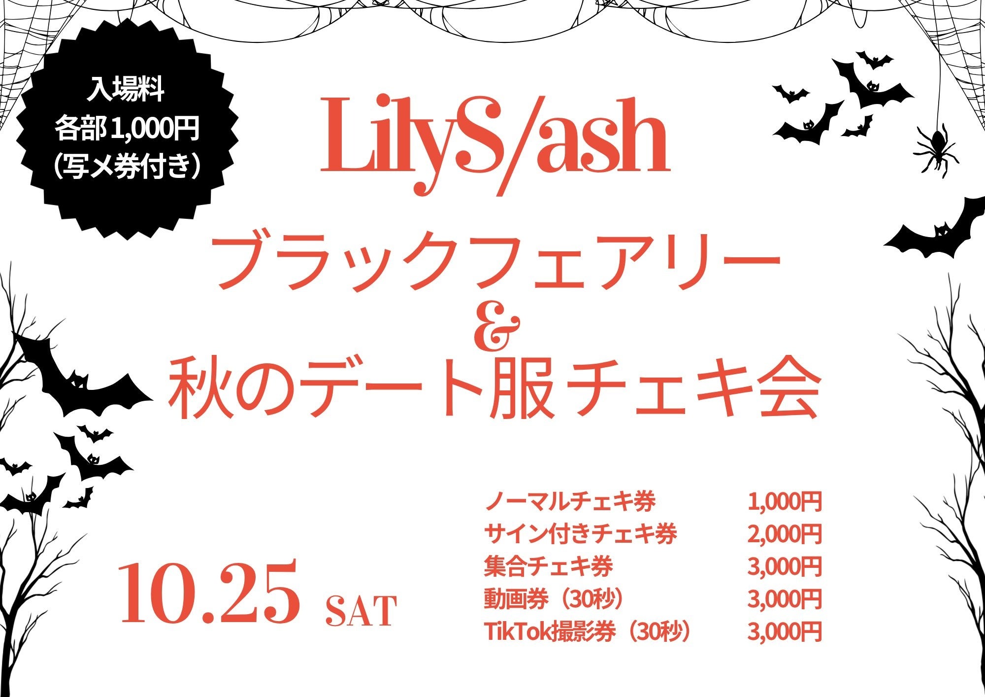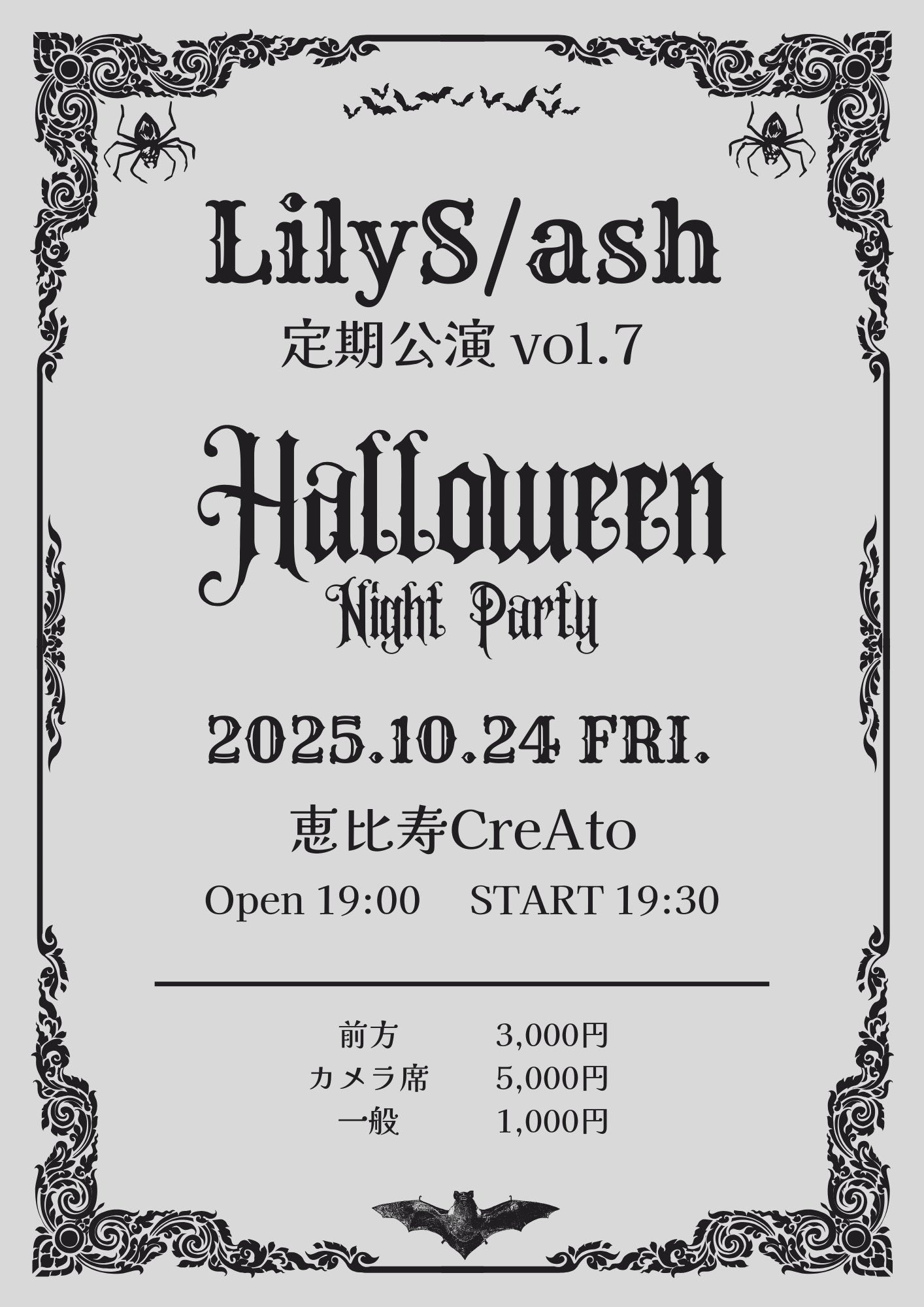 URL: https://prcdn.freetls.fastly.net/release_image/169020/5/169020-5-394b5b0aabfee3e76a06ef7a33b7ce8a-1414×2000.jpg LilyS/ash regular performance ▪︎October 24th (Friday) 『LilyS/ash Regular Performance vol.7 ~Halloween Night Party~ ������Ebisu CreAto ⏰ OPEN 7:00 PM / START 7:30 PM ������️ Camera seats: ¥5,000 / General admission: ¥1,000 / ¥500 on the day (1 drink extra, 1 drink for re-entry) Tickets here▼ https://ticketdive.com/event/lilyslash_251024