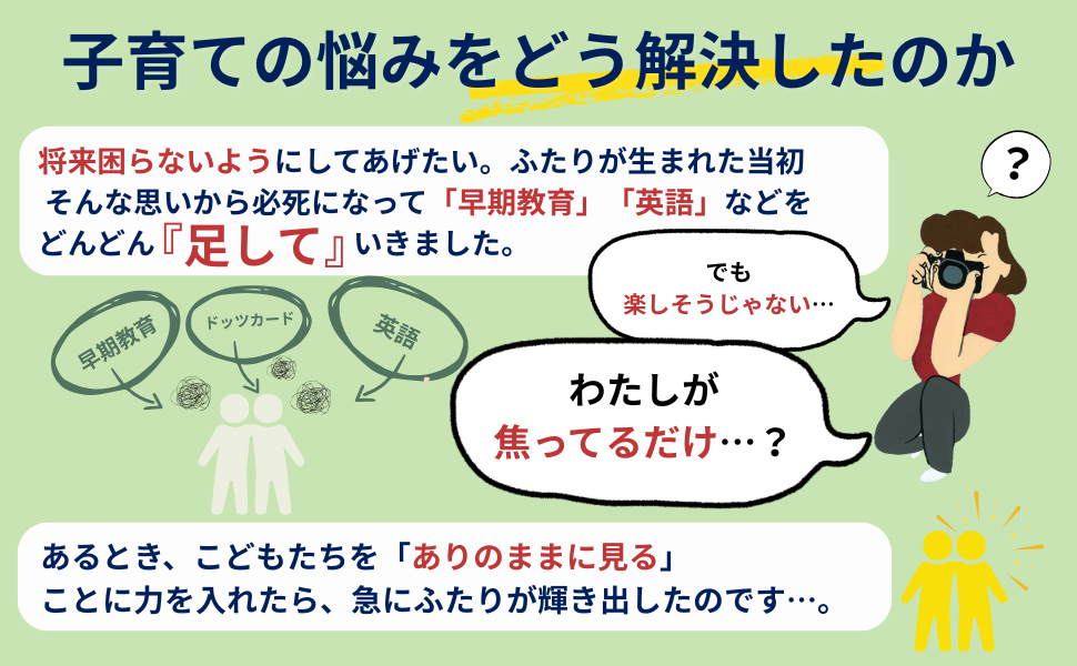 https://prcdn.freetls.fastly.net/release_image/123770/4/123770-4-ad4f5f230038a00570aec1ff335ece93-970×600.png Suddenly gave birth to twins. Even when I get so obsessed with raising my children that I fall into self-loathing Early education boom in the field of education As the trend toward “early education” continues, more families are exposing their children to English and math from an early age, and “how to get ahead in learning” is becoming a central concern. Amid this “additive” education trend, photographer Nobuko Tabe, author of this book, led her twins to Kyoto University by deliberately “drawing out” rather than “adding” to their children. Tabe began by “seeing children as they are,” carefully observing their interests and concerns and linking them to experiences. The