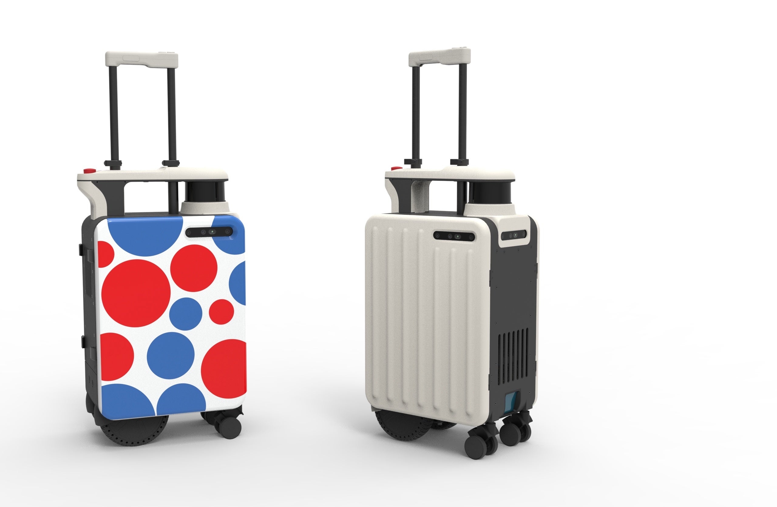 consideration the needs of delivery companies and others, the vehicle has a slim, low-floor, and low center of gravity, and a canopy has been added to make delivery even more comfortable. Inquiries about Full Electric Cargo Tsubakimoto Chain Co., Ltd. New Mobility Business Development Department e-Cargo@gr.tsubakimoto.co.jp AI Suitcase This autonomous navigation robot, developed primarily by the Next Generation Mobility Assist Technology Development Consortium, assists the visually impaired with their mobility. Equipped with an internal computer, sensors, motors, and more, it safely guides the user to their destination, avoiding pedestrians and obstacles, once the destination is set through voice interaction with the user. Image