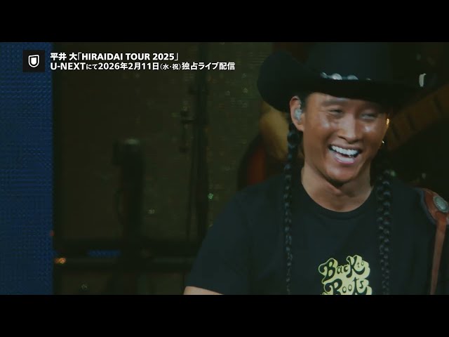U-NEXT Co., Ltd. Press release: October 24, 2025 To Members of the Press Hirai Dai’s final performance of his nationwide arena tour “HIRAIDAI TOUR 2025” will be exclusively live streamed on U-NEXT! Streaming of his 2022 Nippon Budokan performance begins today! U-NEXT, a video streaming service operated by U-NEXT Inc. (Headquarters: Shinagawa-ku, Tokyo; President and CEO: Tenshin Tsutsumi), a member of the USEN & U-NEXT GROUP, has announced that it will be holding a special event for the “HIRAIDAI TOUR” to be held on Wednesday, February 11, 2026 (national holiday). We will be exclusively live streaming the final performance of the “2025” tour. Monthly