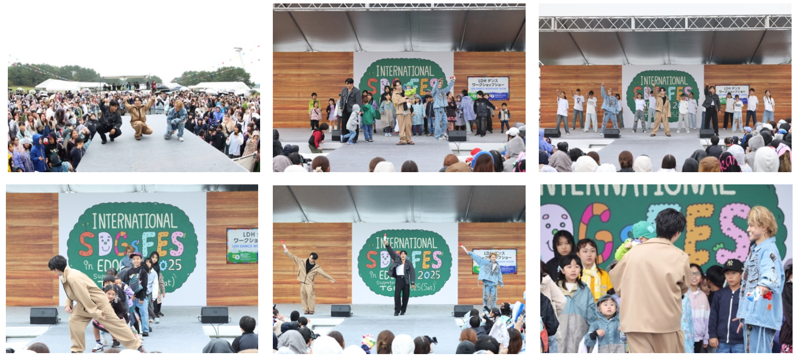 participating in the “LDH Dance Workshop Show”! EXILE TETSUYA calls out, “Let’s push the children who will support the future of Edogawa Ward together!” The SDGs FES concluded with the “LDH Dance Workshop Show” produced by EXILE TETSUYA! From the very first song, EXILE TETSUYA, GENERATIONS’ Yuta Nakatsuka, and Edogawa-born THE RAMPAGE’s Shogo Iwatani appeared on stage, performing the wildly popular songs “Choo Choo TRAIN” and “I Wish For You” alongside dancers from EXPG STUDIO OMIYA KIDS and EXPG High School Tokyo. During “Choo Choo TRAIN,” EXILE TETSUYA and Iwatani Shogo themselves invited kids onto the stage, and the venue was filled with excitement and loud cheers. Nakatsuka Yuta expressed his deep feelings, saying, “This is actually the first time I’ve performed with TETSUYA since the stage where he tore his Achilles tendon. I’m so happy and moved to be able to dance with him.” EXILE TETSUYA then smiled and said, “Our motto is to dance happily no matter what the environment. Please enjoy yourself freely!” During “MORNING SUN” by EXILE B HAPPY, a unit formed with the goal of “supporting children’s dreams through dance and music,” the audience improvised Edogawa’s “E pose” and filmed a TikTok video. During GENERATIONS’ “Y.M.C.A,” the audience stretched their bodies to their fullest and struck the “Y.M.C.A pose,” uniting the audience and creating a huge buzz. For the classic song “Rising Sun,” they collaborated with the dance club from Edogawa Ward’s Kasai Third Junior High School. EXILE TETSUYA said, “A lot of kids came. I hope everyone has the biggest smiles on their faces.” They danced to “Rising Sun” with all their might, and the club members were all smiles after finishing their performance. The following songs were performed: EXILE THE SECOND’s “Going Crazy,” THE RAMPAGE’s