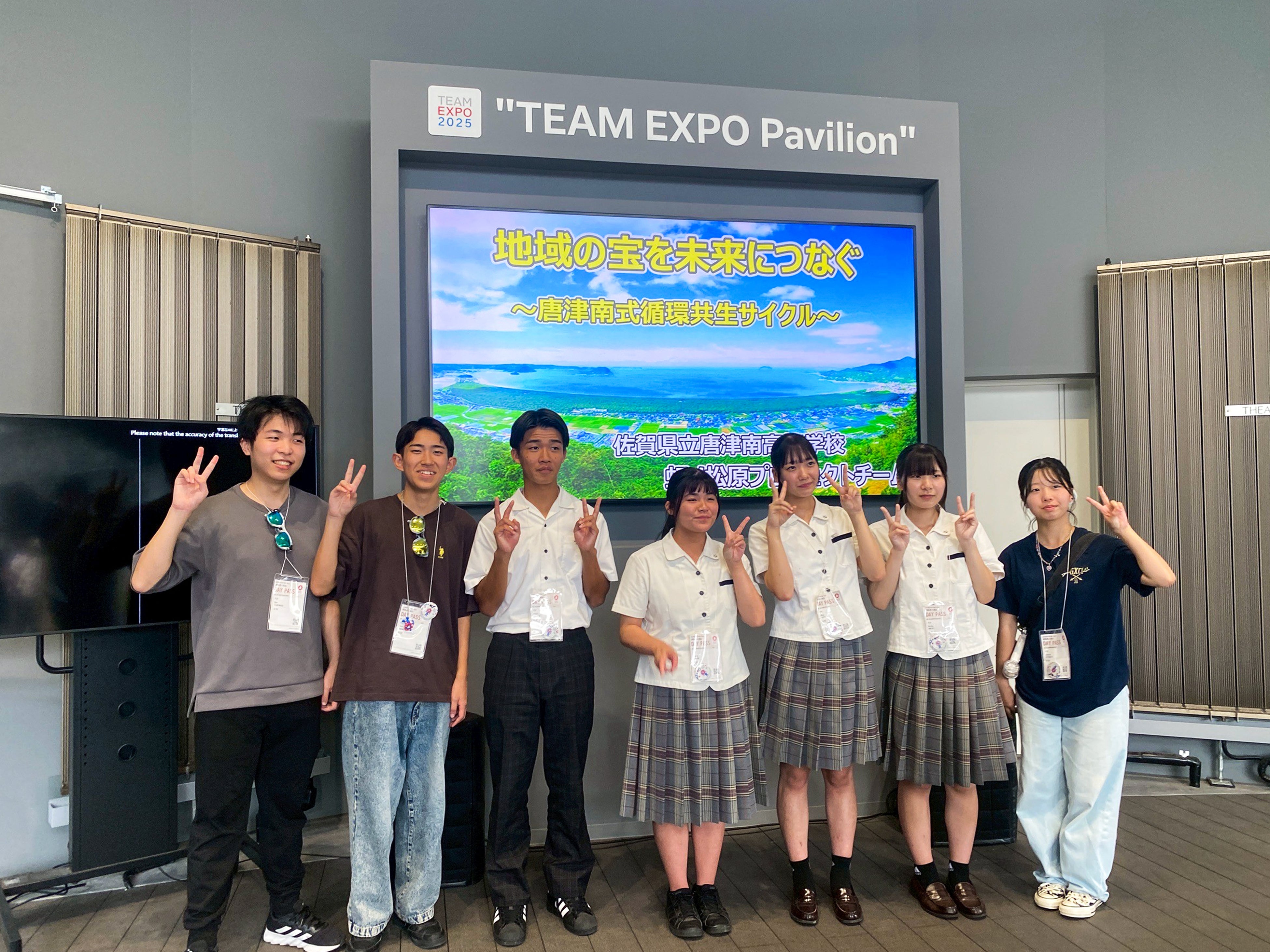 https://prcdn.freetls.fastly.net/release_image/142434/112/142434-112-219b894a3c304ee616ad32eb03cb26d9-3900×2925.jpg Osaka-Kansai Expo 2005 TEAM EXPO Pavilion Karatsu Minami High School students and graduates on stage To the world with high school students. “Karatsu Minami Style Circulatory Symbiosis Cycle” will be exhibited at the TEAM EXPO Pavilion. Appearance Date: September 20, 2025 / Venue: TEAM EXPO Pavilion (Future Life Village) On September 20th, the Karatsu Minami High School “Niji no Matsubara Project Team” and Karatsu Farm & Food took to the stage at the TEAM EXPO Pavilion (Future Life Village). The high school students presented the “Karatsu Minami Circular Symbiosis Cycle,” which utilizes pine needle compost, marine plastic waste, and local ingredients, and shared their sustainable regional circulation model with the world. The exhibition booth also displayed recycled products by Precious Plastic Karatsu, showcasing the results of regional education co-created by alumni and current students. This project has been highly praised as an example of ESD (Education for Sustainable Development).