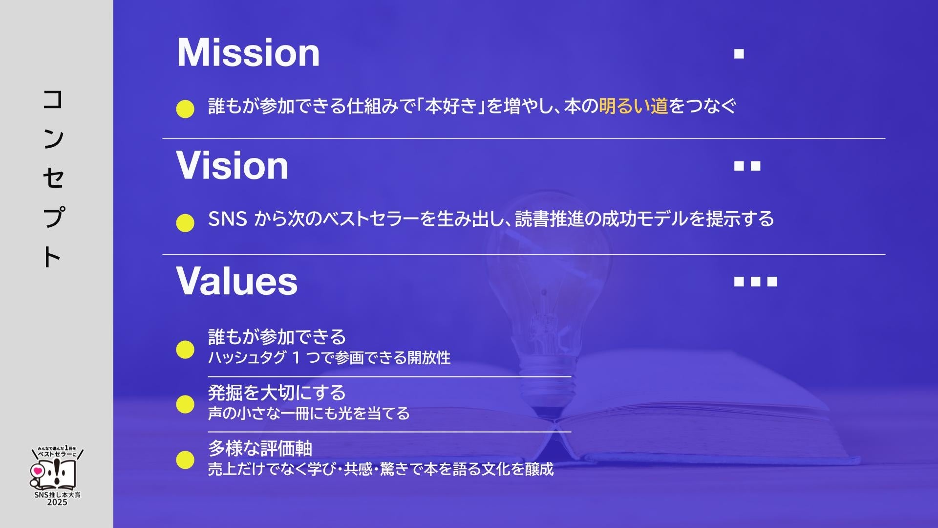 https://prcdn.freetls.fastly.net/release_image/172171/2/172171-2-f18ce1241d149e47117f865ebbe0286b-1920×1080.jpg [Readers’ voices are becoming less visible amid the publishing recession] The publishing industry has been shrinking for a long time, facing structural challenges such as a decrease in the number of bookstores and an increase in the number of publications, resulting in an increase in the number of good books that go unpublished. [There is no system to link social media feedback to purchasing behavior] The spread of social media has created an environment where each reader can express their own “recommended books.” However, the reality is that these voices are scattered, making it difficult to translate them into actual purchasing behavior or promotion in bookstores. [The disconnect between the digital native generation and brick-and-mortar bookstores] Especially among younger generations, the places where people encounter books are shifting online. However, the value of chance encounters in brick-and-mortar bookstores and the experience of picking up and choosing a book remains. Creating new mechanisms to connect the two is essential for the sustainability of publishing culture. The SNS Recommended Book Award is a groundbreaking award that creates new bestsellers through reader-led efforts.
