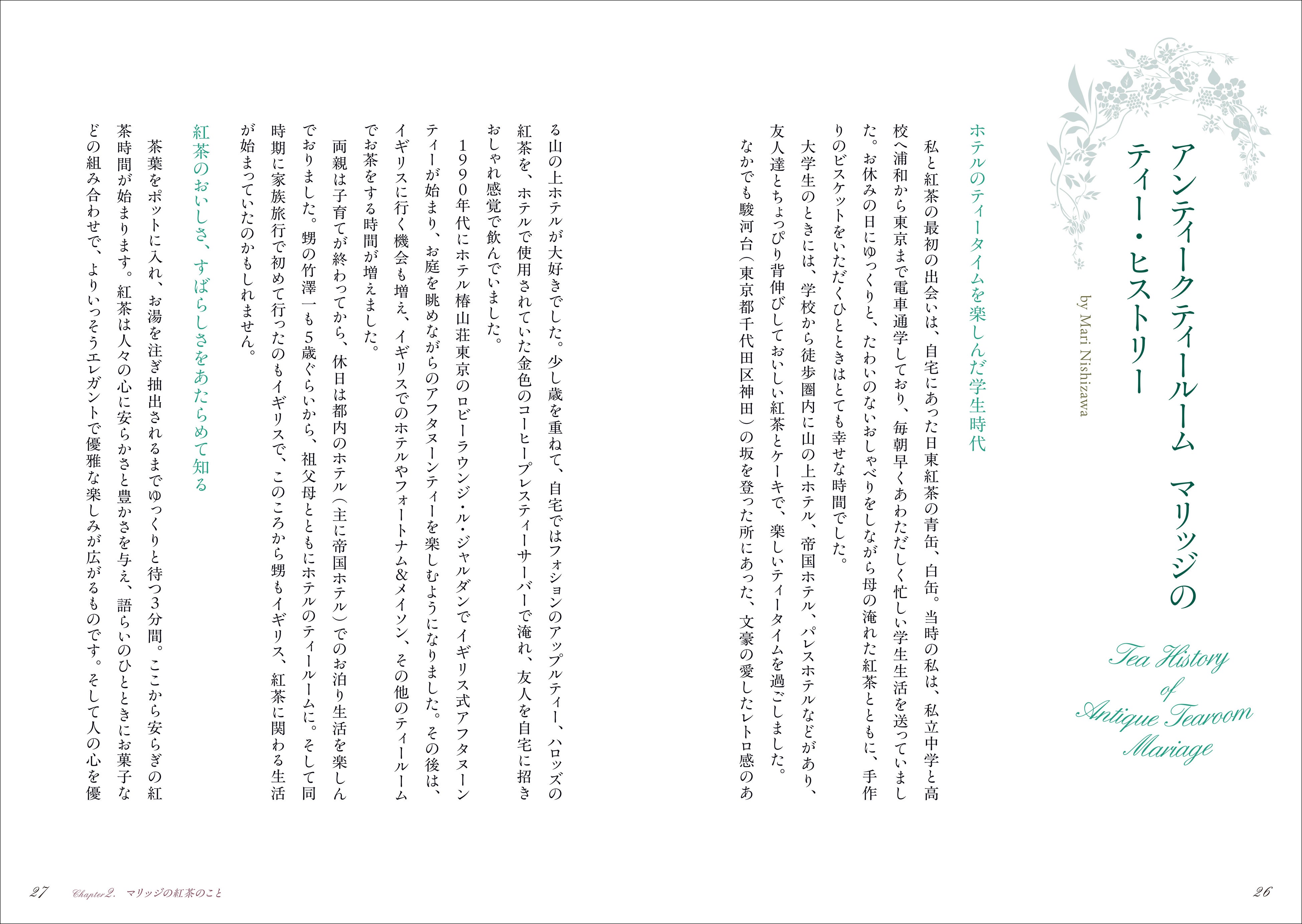 https://prcdn.freetls.fastly.net/release_image/12109/1787/12109-1787-bc9f573913a90393582428b325659127-3900×2767.jpg Marriage Tea Room is a relaxing space where you’ll want to stay for hours, attracting many repeat customers. An elegant tea time is crammed into this book. Enjoy the marriage of tea, sweets, and antiques. 【Table of Contents】