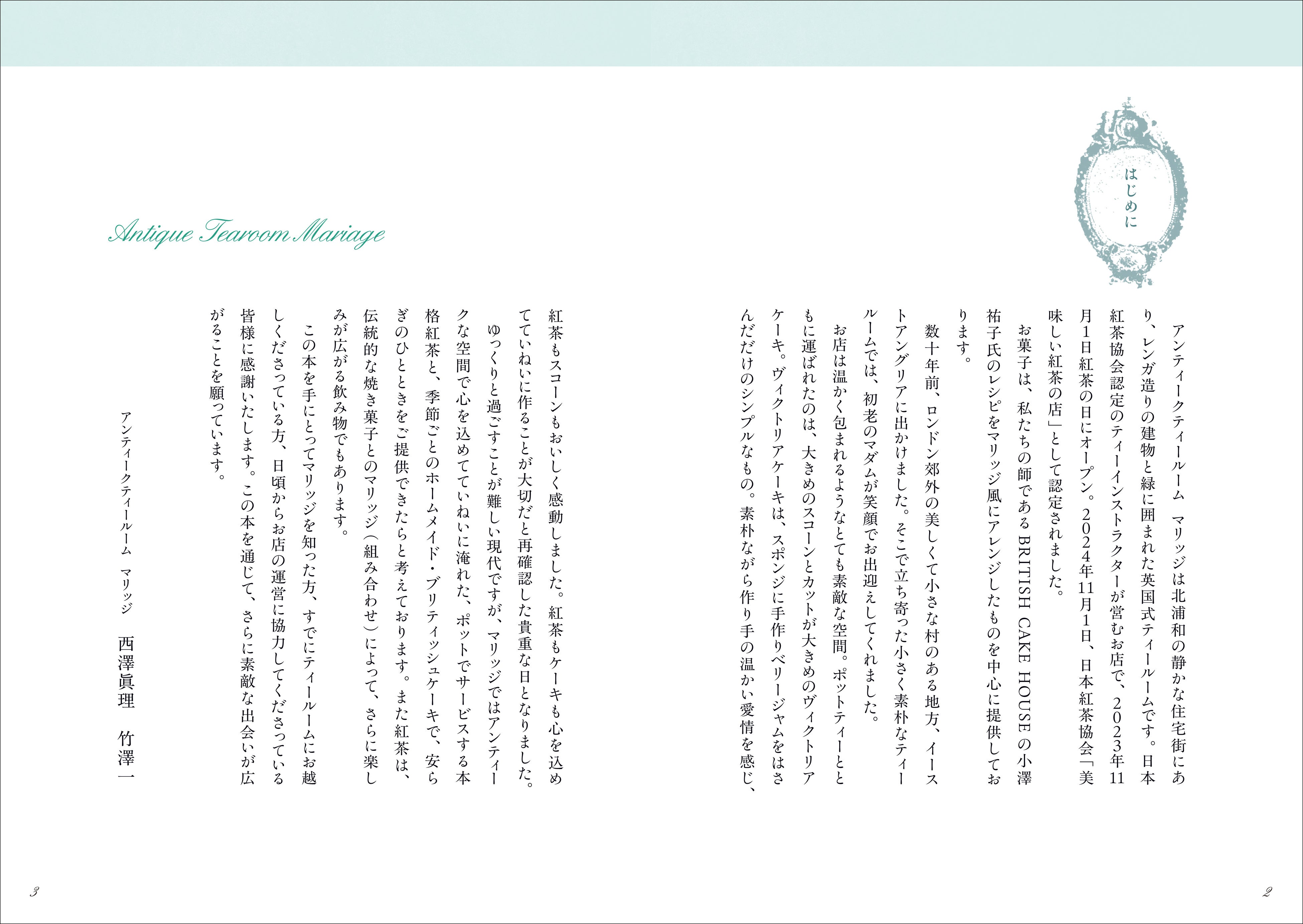 https://prcdn.freetls.fastly.net/release_image/12109/1787/12109-1787-f96ea5935cb243dca69b7edee2bb4d98-1903×2700.jpg 【Author Profile】 Koseki Yumi After graduating from Tokyo Jogakkan University, she studied under Akasegawa Genpei at the Department of Modern Studies at Bigakko. After working at a publishing company, she moved to the UK. After returning to Japan, she began working as a writer while also running the antiques business “Bebe’s Antiques.” She also teaches at the NHK Culture Center. Her major works include “British Afternoon Tea & Sweets” (Kodansha), “British Sweets and Breads that Color the Four Seasons, and Sometimes Afternoon Tea,” and “I Love Scones!” (all published by Seibundo Shinkosha). Mari Nishizawa Certified tea instructor and table coordinator by the Japan Tea Association. Studied British confectionery at British Cake House. Until 2020, she ran the tea school “Afternoon Tea Salon” for over a decade. After the COVID-19 pandemic, she opened Marriage on November 1, 2023 (Tea Day). Hajime Takezawa Since childhood, he has enjoyed homemade British sweets at Mari Nishizawa’s home, and every few years when he visits the UK, he enjoys afternoon tea and cream tea. He always keeps the pairing of sweets and tea in mind when making sweets. After studying British confectionery at British Cake House, she plans to open Marriage on November 1st, 2023 (Tea Day). 【Book Summary】 Title: Antique Tea Room Marriage’s British Afternoon Tea and Antiques Authors: Yumi Koseki, Mari Nishizawa, Hajime Takezawa Specifications: A5 size, 160 pages Price: 2,200 yen (tax included) Release date: Friday, November 7, 2025 ISBN: 978-4-416-62404-3 Purchase the book here ​