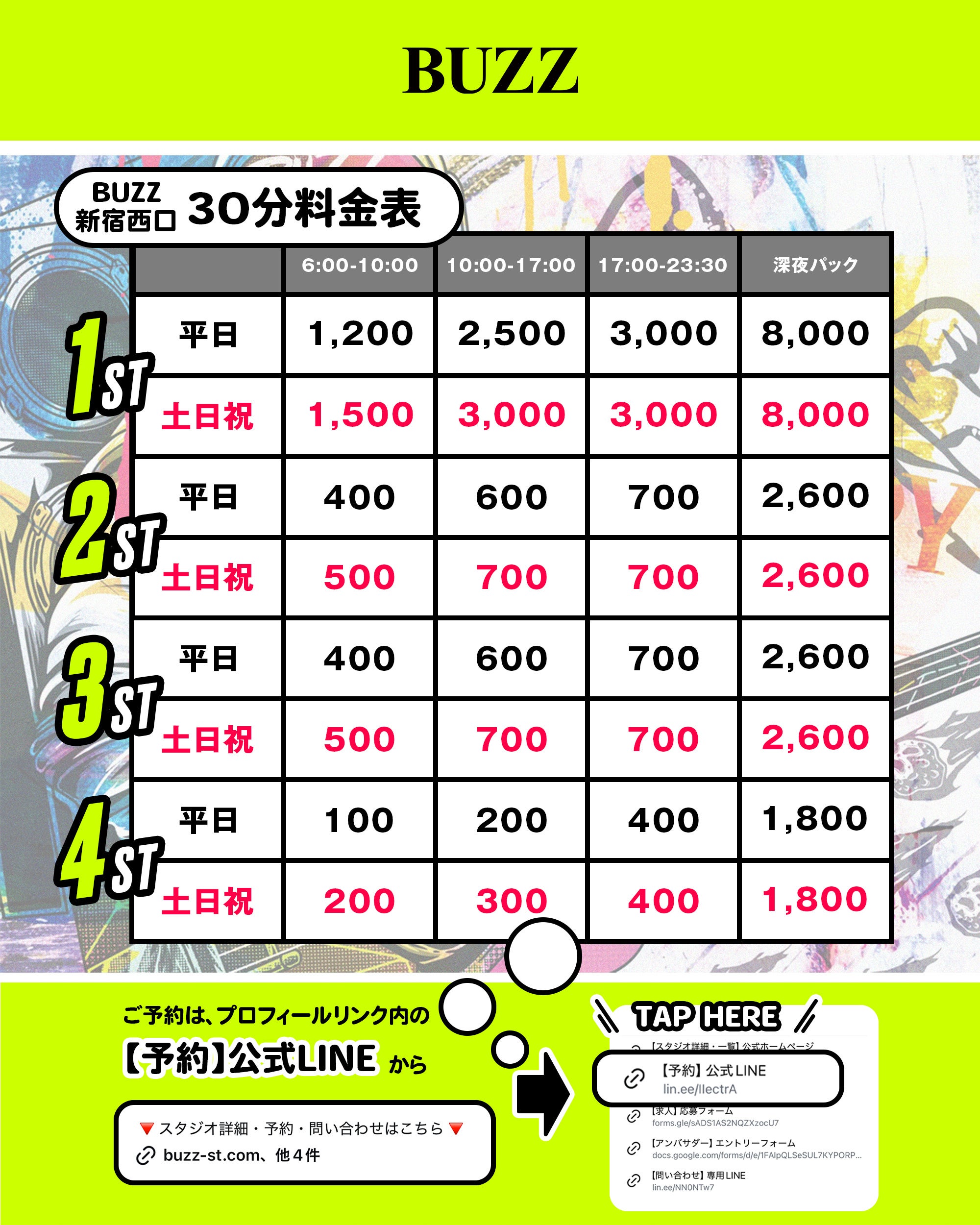 BUZZ GROUP Co., Ltd. Press release: October 27, 2025 To Members of the Press [The largest in the Shinjuku area] STUDIO BUZZ Shinjuku West Exit opens on October 25th! A premium rehearsal studio with an impressive space of over 70 square meters and high-quality speakers has arrived! 1 minute walk from Shinjuku West Exit Station, with 6 studios in total, our 7th store in the Shinjuku area!