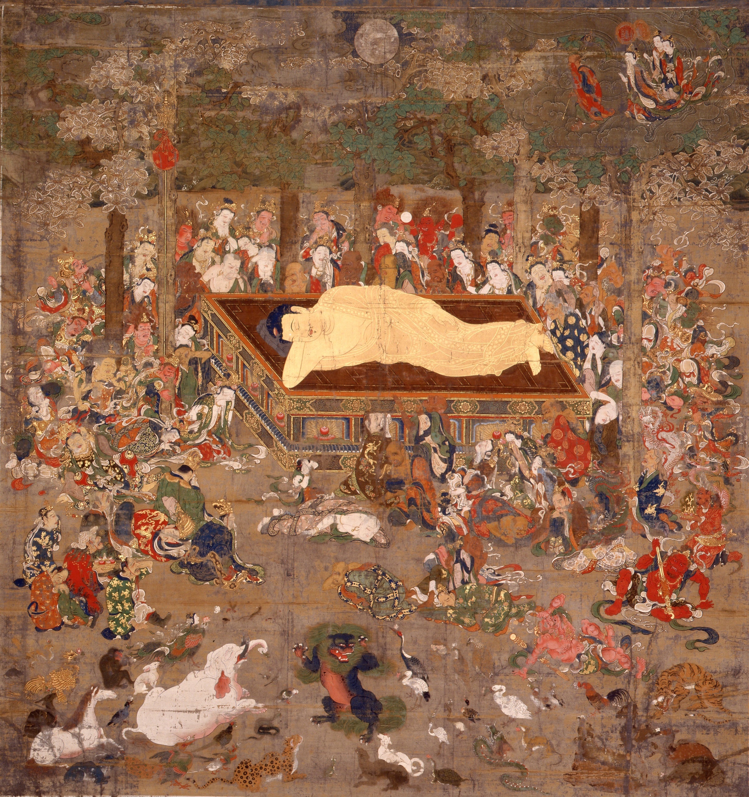 https://prcdn.freetls.fastly.net/release_image/135074/121/135074-121-226c58b3577f6386f1467df9adf9e603-2460×2616.jpg Important Cultural Property: Buddhist Nirvana Painting (Butsunehanzu), Colored Silk, Kamakura to Nanboku-cho Period, 14th Century, Chohoji Temple Collection