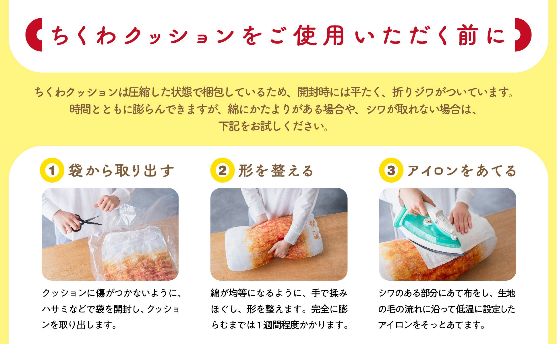 https://books.rakuten.co.jp/rb/18406491/ ※【About the “Chikuwa Cushion”】 The Chikuwa Cushion is packed in a compressed state, so it will be flat and have creases when you open it. When you receive it, open it and knead it with your hands to evenly distribute the filling. It will take about a week for it to fully expand.