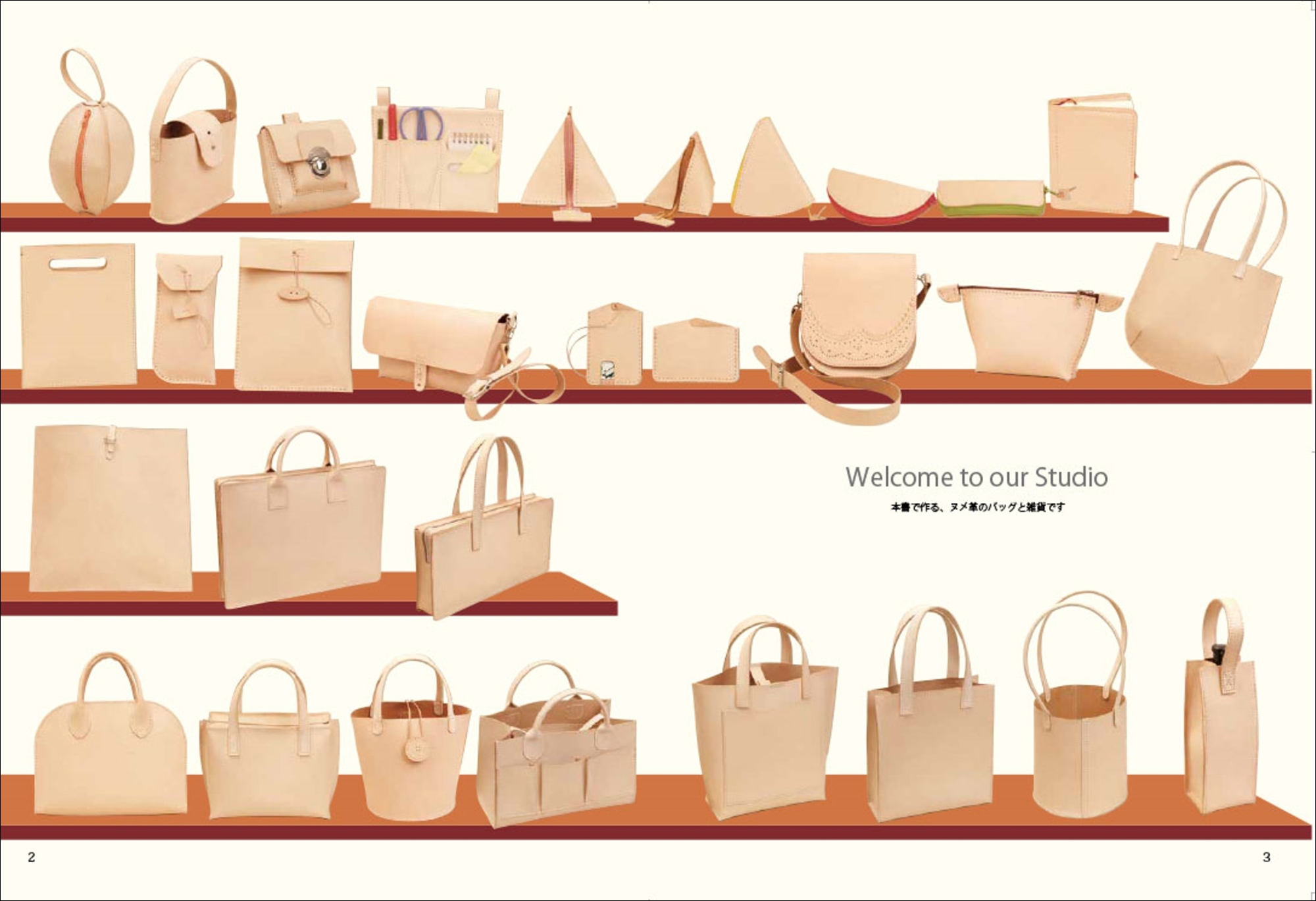 35 simple bags and accessories! Learn the basics of hand-stitching bags from vegetable tanned leather, even if it seems difficult to make them, with the expanded edition, “Hand-stitched Bags Made with Vegetable Tanned Leather,” available in November.