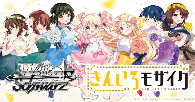 https://prcdn.freetls.fastly.net/release_image/14827/9026/14827-9026-5fbb385ba84a6ee67a452aafc8b69fb1-680×357.png Weiss Schwarz Official Portal Site: https://ws-tcg.com/ Weiss Schwarz Official X: https://x.com/wstcg Weiss Schwarz & Rebirth Channel: https://www.youtube.com/channel/UCEJPtpdhYMPBWuf-Xm2xc1g *Please include the following information when posting. (C) Yui Hara, Houbunsha / Kin-iro Mosaic: Thank You!! The Movie Production Committee (C)bushiroad All Rights Reserved.