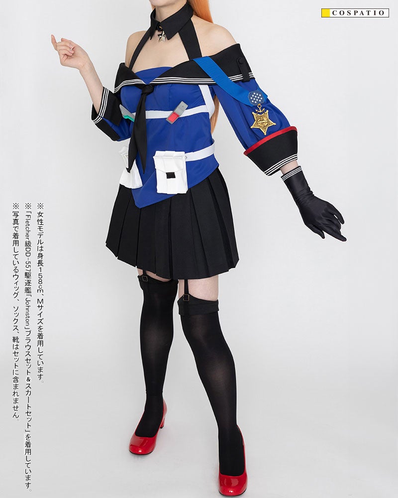 https://prcdn.freetls.fastly.net/release_image/99047/1327/99047-1327-d66583fa7d0b14df242917a34da7de7d-800×1000.jpg Product Name: Fletcher-Class DD-557 Destroyer “Johnston” Blouse Set Release date: Early July 2026 Set contents: Halter neck blouse, medal, scarf, pouch, gloves Sizes: Ladies S/Ladies M/Ladies L/Ladies XL/Ladies XXL Material: Blouse outer material (100% polyester), rubber (nylon, polyester, rubber), medal (zinc alloy, brass), scarf outer material (100% polyester), pouch outer material (65% polyester, 35% cotton), glove outer material (84% polyester, 16% polyurethane) Price: ¥72,050 (tax included) The costume for the Fletcher-class DD-557 destroyer “Johnston” is here!! ◇The under-chest and cross belts are made of elastic for a snug fit. *She is wearing the “Fletcher-class DD-557 Destroyer “Johnston” Skirt Set,” sold separately. *The wig, skirt, garter belt, socks, and shoes worn in the photo are not included in the set. Made in Japan