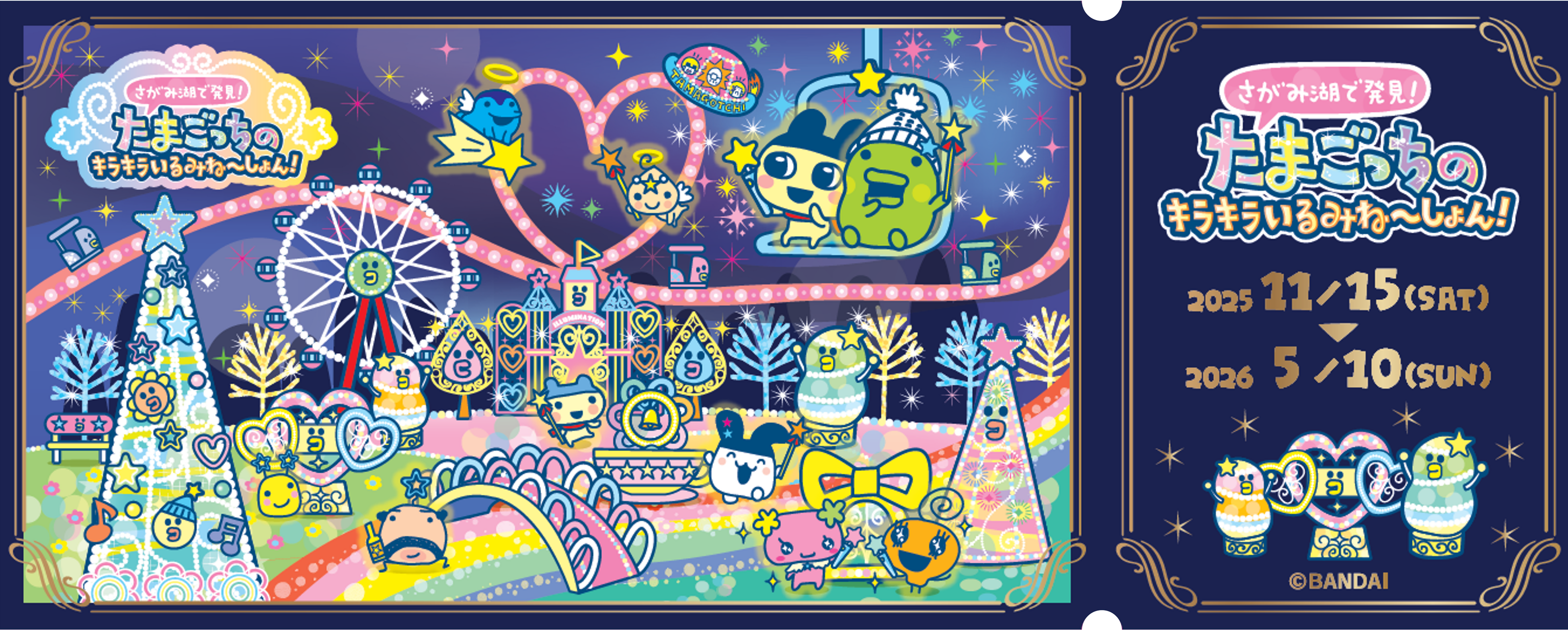 collaboration menu items. In addition to a hearty plate featuring a gathering of Tamagotchis, there will also be sweets, hot soup, and more. Customers who order the collaboration food will receive limited-edition placemats and coasters as free gifts, so look forward to that too. This winter, be sure to check out the cute and fun Tamagotchi illuminations. “Discover Tamagotchi Sparkling Illumination at Lake Sagami!” Overview Balloons and illuminations will appear, letting you feel the exciting story of Tamagotchis arriving at “Sagamiko Illumination” on UFOs and shooting stars. There will also be many fun features, such as a photo spot where you can take photos that look like you’re inside the Tamagotchi device.The views from the attractions “Tamagotchi’s Starry Sky Pedal” and “Tamagotchi’s Sparkling Candle” are breathtaking, with a panoramic view of 6 million illuminations. Event Period: Saturday, November 15, 2025 – Sunday, May 10, 2026 Special Website: