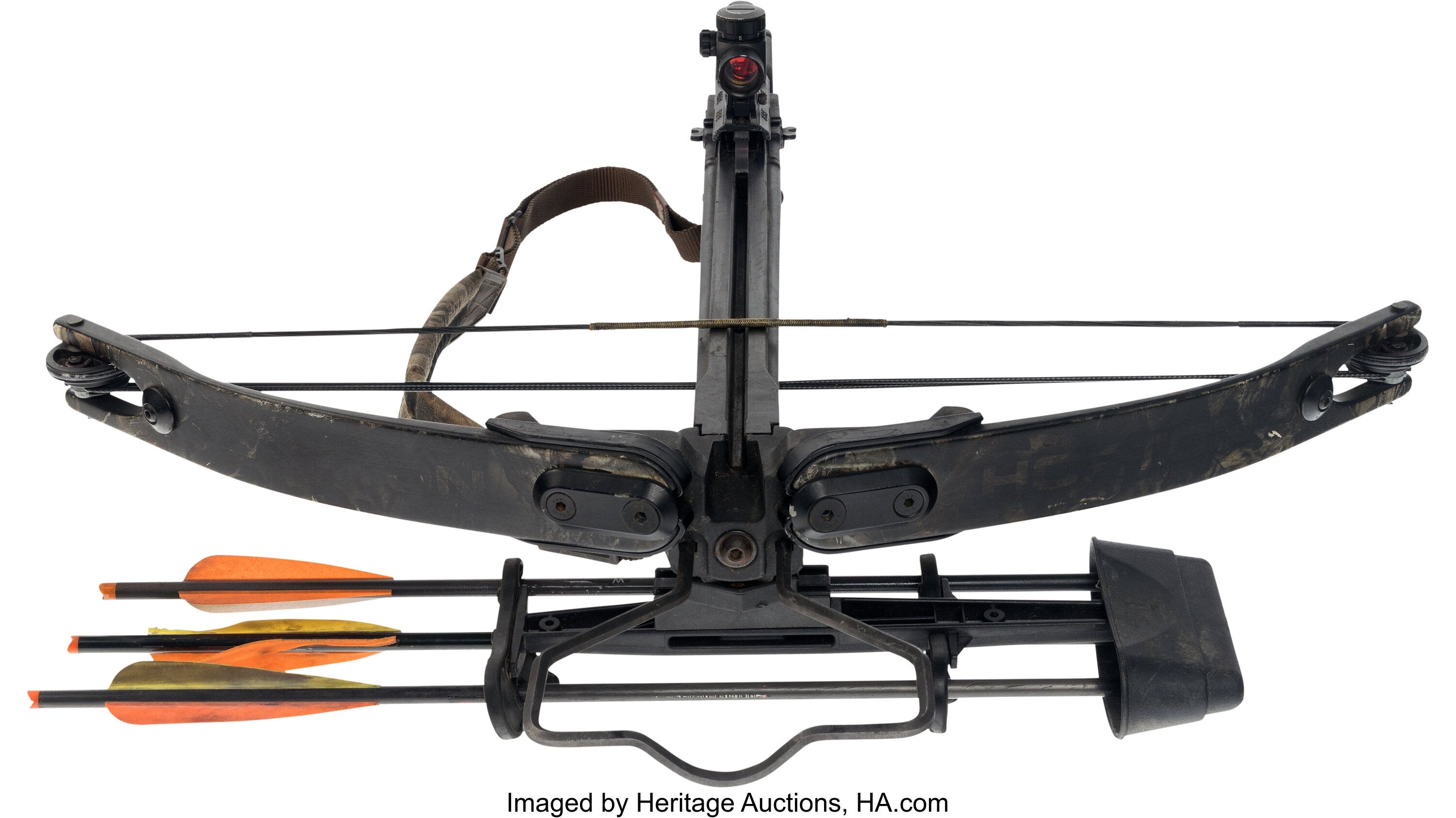https://prcdn.freetls.fastly.net/release_image/135668/51/135668-51-d4e63d6b970b32bb868c083e3b8f6361-3000×1991.jpg Imaged by Heritage Auctions, HA.com Daryl Dixon (Norman Reedus), “The Walking Dead” (AMC Horton Crossbow (2010-2022, Seasons 1-3). Carried by Daryl Dixon (Norman Reedus) throughout Seasons 1-3, the weapon made its series debut in Season 1, Episode 3 with Daryl Dixon still part of the Ruffians. It first appeared when Rick Grimes (Andrew Lincoln) and his fellow survivors encountered a deer being eaten by walkers after Daryl had tracked it for miles with the crossbow, and the weapon remained with Daryl thereafter. Daryl’s consistently effective use of the Horton Crossbow was eventually replaced by the Stryker Strikezone 380 crossbow that Rick acquired from Morgan Jones’ (Lennie James) arsenal. ◆Negan’s Wire Bat “Lucille”
