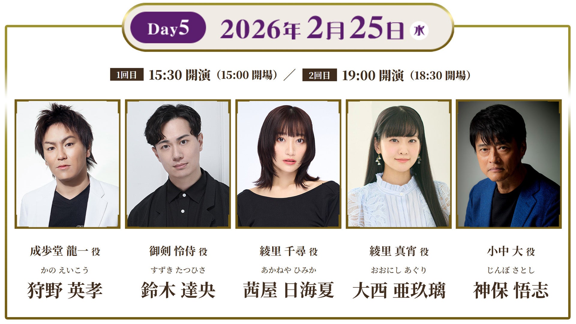 https://prcdn.freetls.fastly.net/release_image/3633/541/3633-541-1ebeafed2dcc16dd9b04907daf427c08-1920×1080.jpg ・Performance name: Lemino presents Animax Reading Drama “Ace Attorney” – Original work: Phoenix Wright/Capcom Co., Ltd. – Dates: February 21st (Sat) – 25th (Wed), 2026, 9 sessions total – Venue: Hitotsubashi Hall, Japan Education Center (https://www.jec.or.jp/hall.html) Seating: All seats reserved, 11,000 yen (tax included) ・Performers (listed in alphabetical order by performance date) ◆Saturday, February 21, 2026, 6:30 PM (Doors open at 6:00 PM) Takagi Wataru / Takatsuka Tomohito / Nakajima Yuki / Park Romi / Maeno Tomoaki ◆Sunday, February 22, 2026, 2:00 PM (Doors open 1:30 PM) / 5:30 PM (Doors open 5:00 PM) Tatsuhisa Suzuki / Marika Takano / Shou Hayami / Yoko Hikasa / Shotaro Morikubo ◆February 23, 2026 (Monday/Holiday) 14:00 start (doors open at 13:30) / 17:30 start (doors open at 17:00) Akaneya Hikaika / Onishi Akuri / Shima / Satoshi Jimbo / Tatsuhisa Suzuki ◆February 24, 2026 (Tuesday) 15:30 start (doors open at 15:00) / 19:00 start (doors open at 18:30) Hikami Akaneya / Fumiya Imai / Aguri Onishi / Satoshi Jimbo / Tatsuhisa Suzuki ◆Wednesday, February 25, 2026 15:30 start (doors open at 15:00) / 19:00 start (doors open at 18:30) Himika Akaneya / Aguri Onishi / Hidetaka Kano / Satoshi Jinbo / Tatsuhisa Suzuki